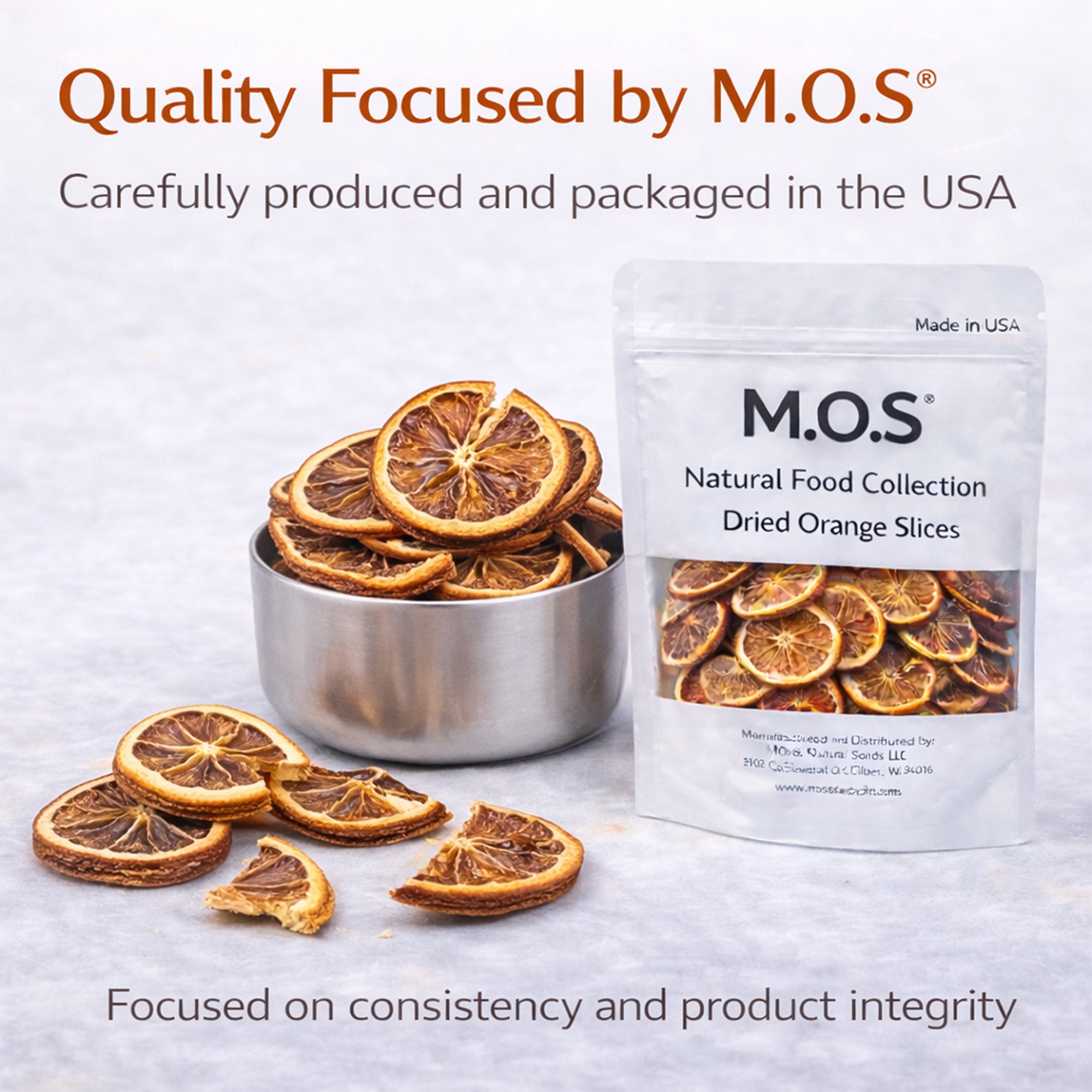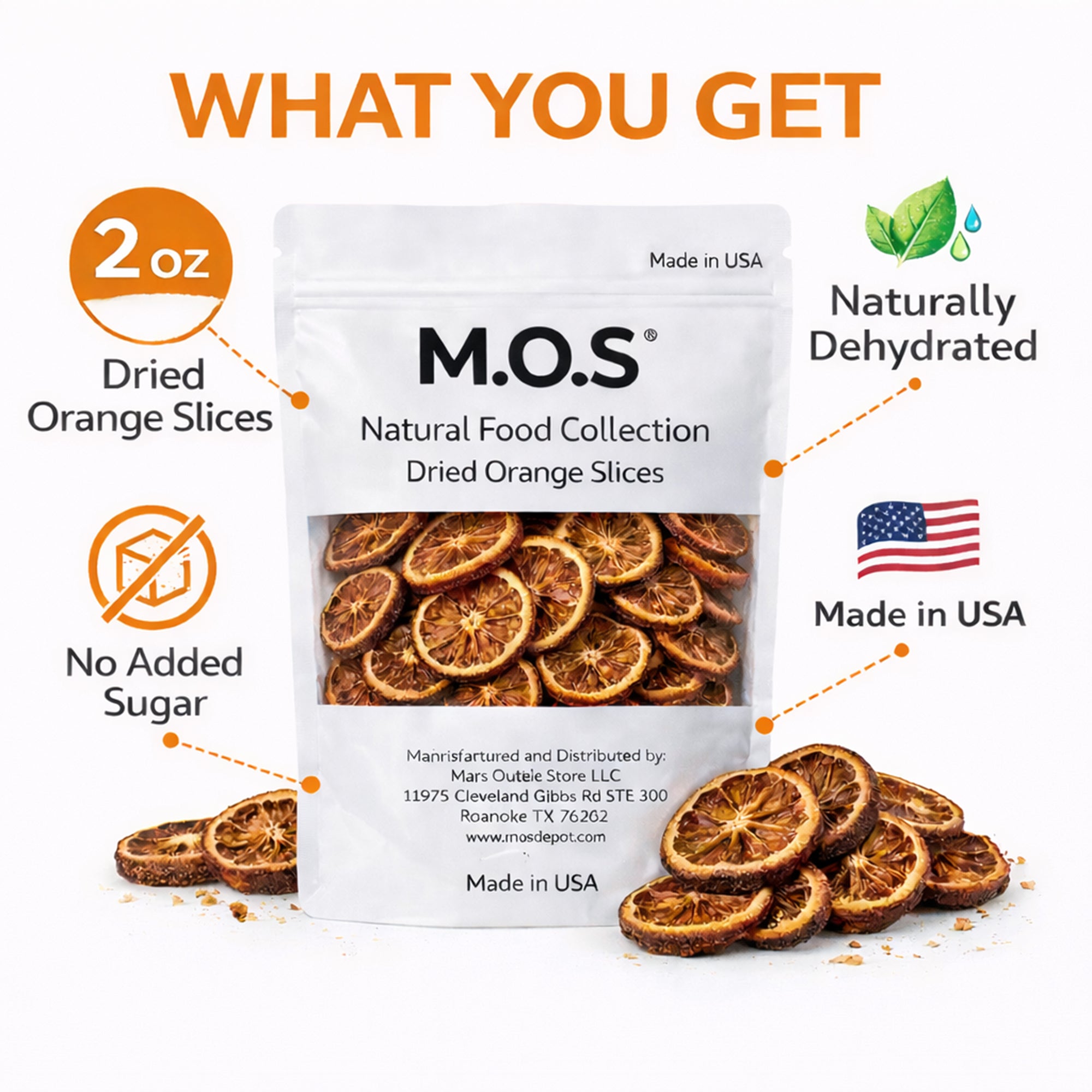 M.O.S Dried Orange Slices 2 oz No Sugar Added, Made in USA Premium Dehydrated Orange Wheels