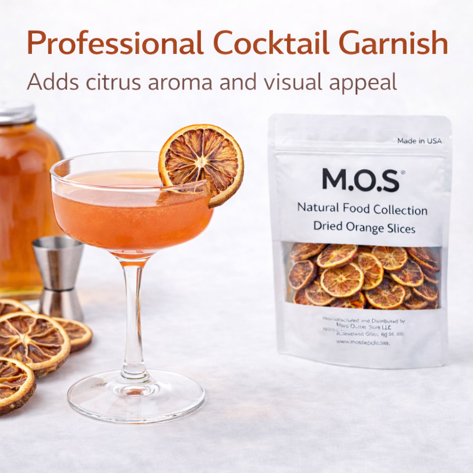 Loved by bartenders, bakers, and home creators, M.O.S rejects over 30 percent of fruit to ensure only the highest quality slices reach you. Made in the USA with care, consistency, and uncompromising standards.