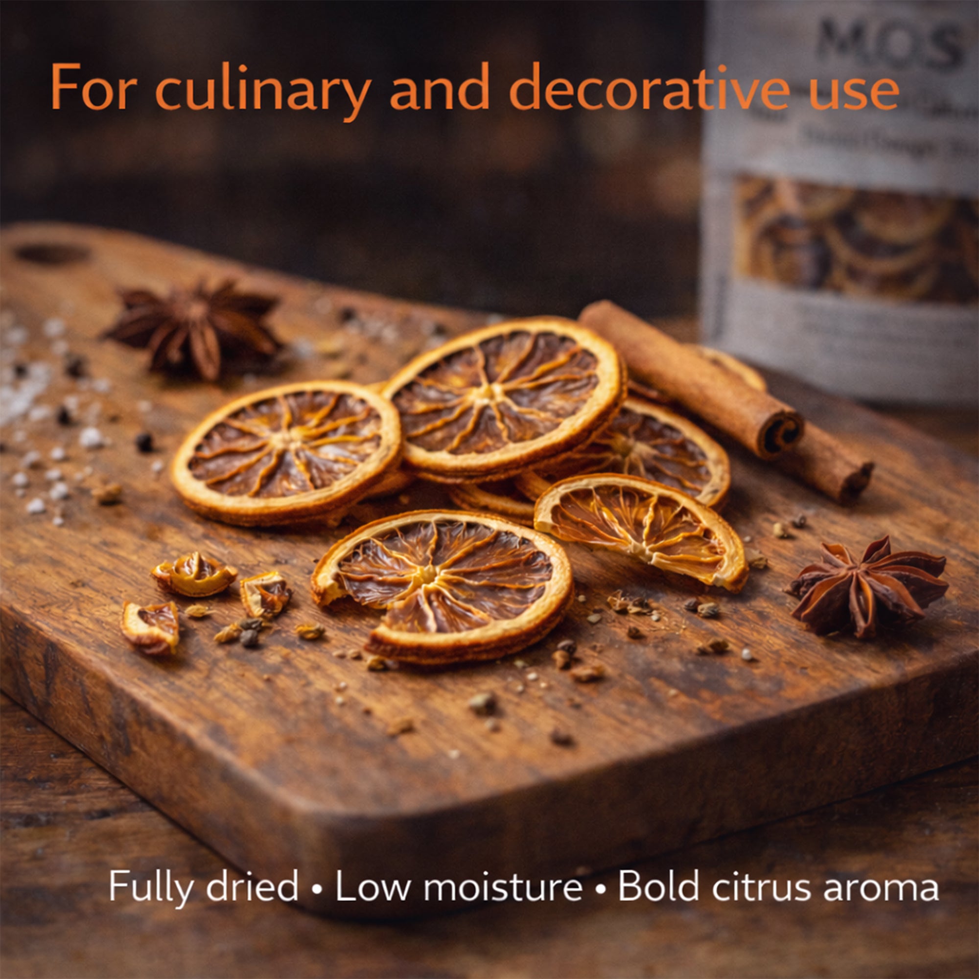 Perfect as a professional garnish for cocktails such as Old Fashioned, Negroni, Gin and Tonic, Aperol Spritz, mulled wine, hot toddies, and herbal teas. Also ideal for baking cookies, cakes, scones, chocolate dipping, and enhancing cheese boards.