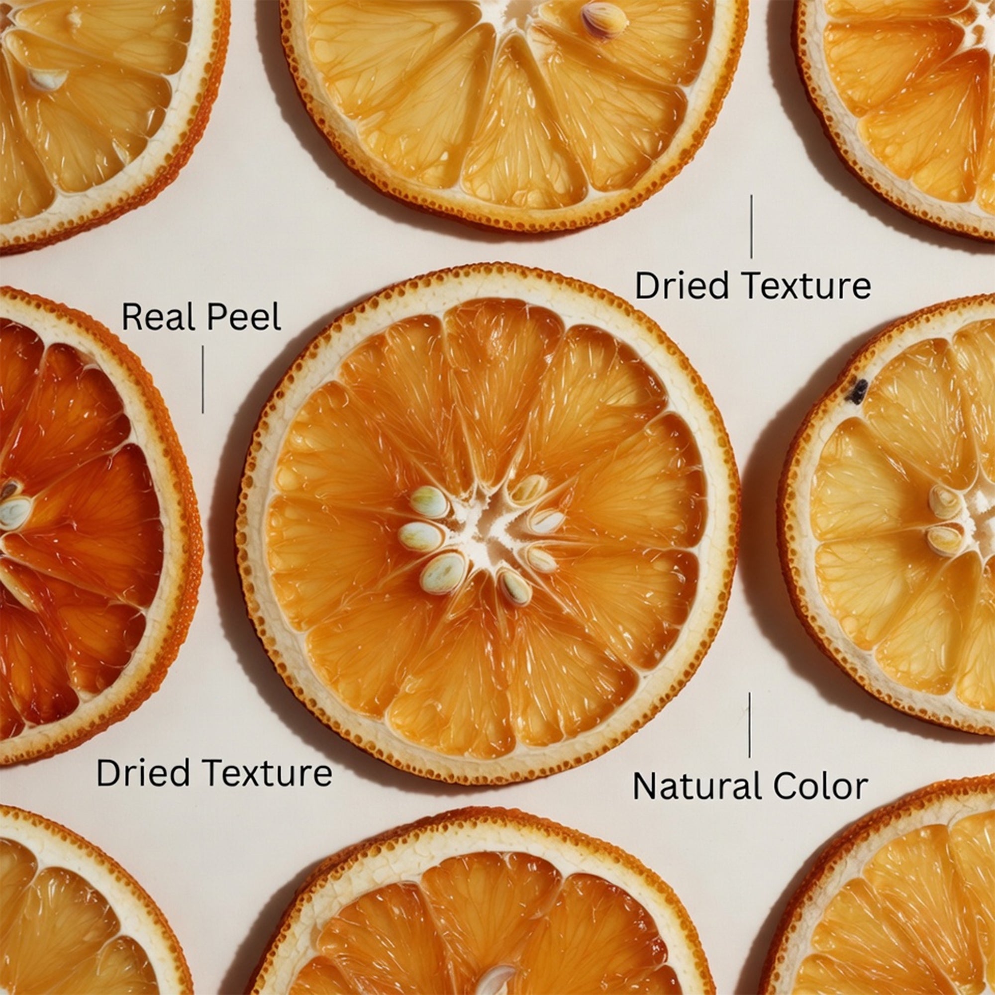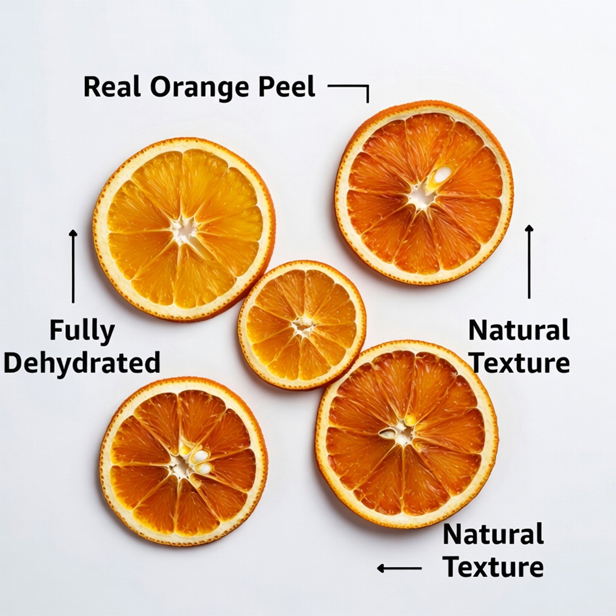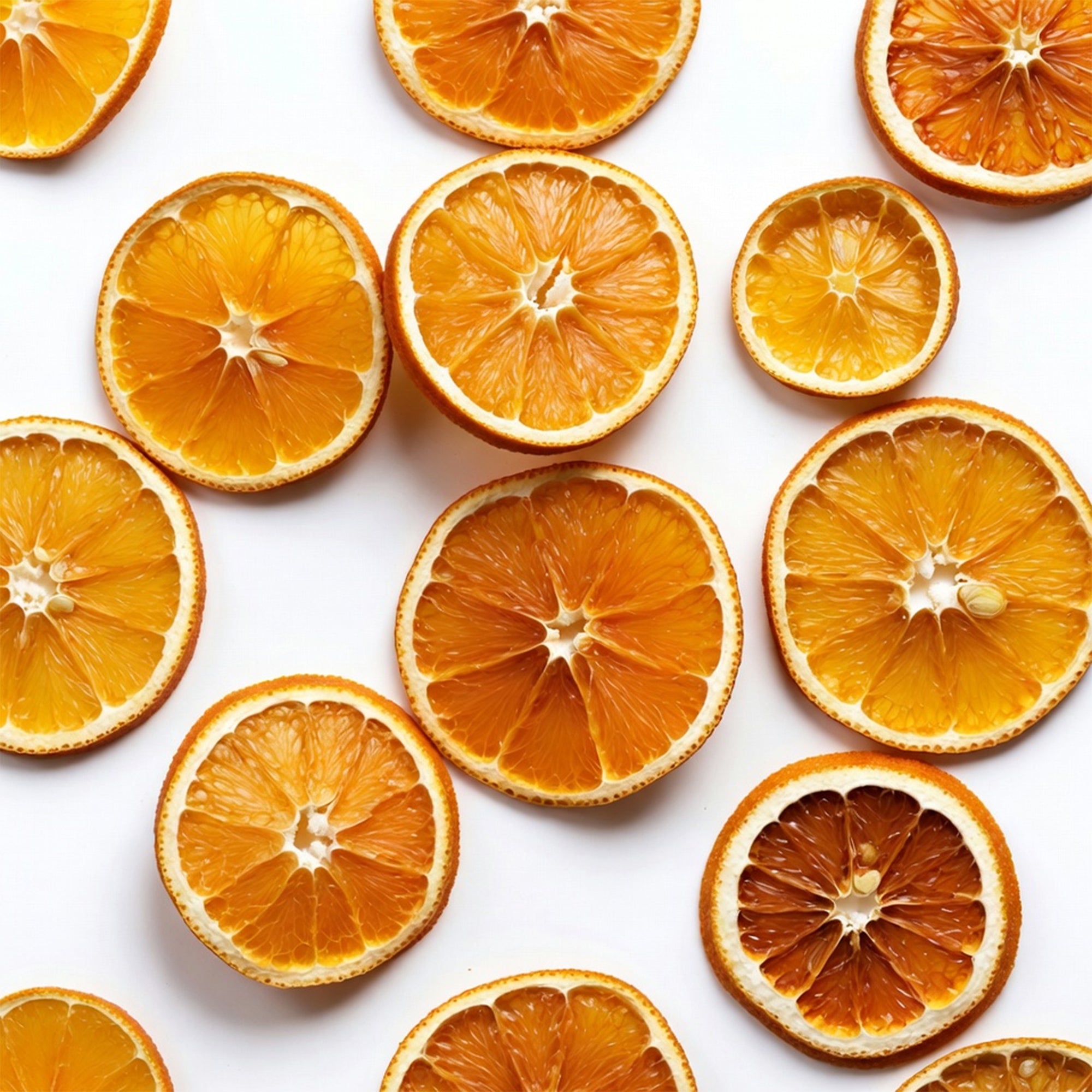 Low temperature drying preserves natural essential oils for a bright, fresh orange taste. Never flat or dull imported slices.