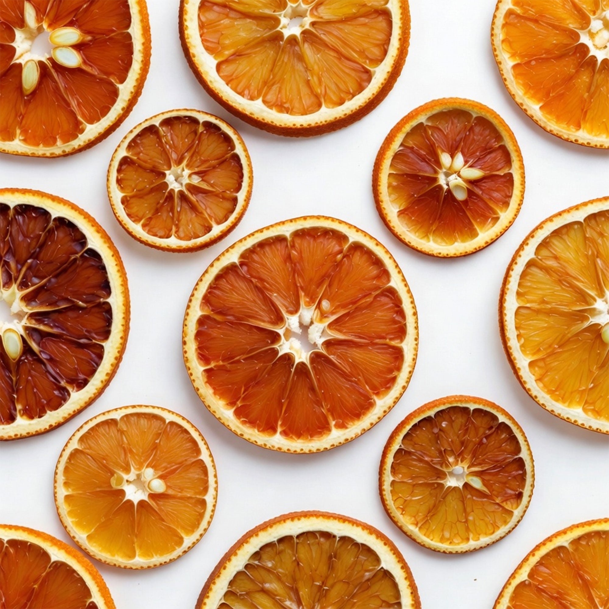 Each 2 oz resealable stand up pouch includes 25 to 30 large, uniform slices, 3 to 5 mm thick, seedless and free of brown edges. Low temperature dehydration preserves essential oils, delivering bold aroma, bright color, and real orange taste while retaining Vitamin C and fiber.