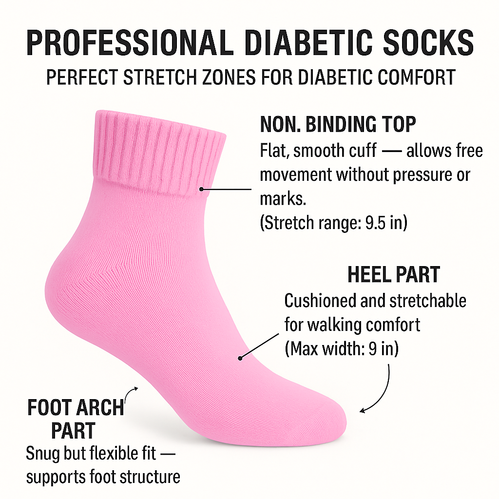 • Non-Binding Design: Loose fit top will not constrict legs or ankles, promoting healthy circulation for diabetics and those with edema.