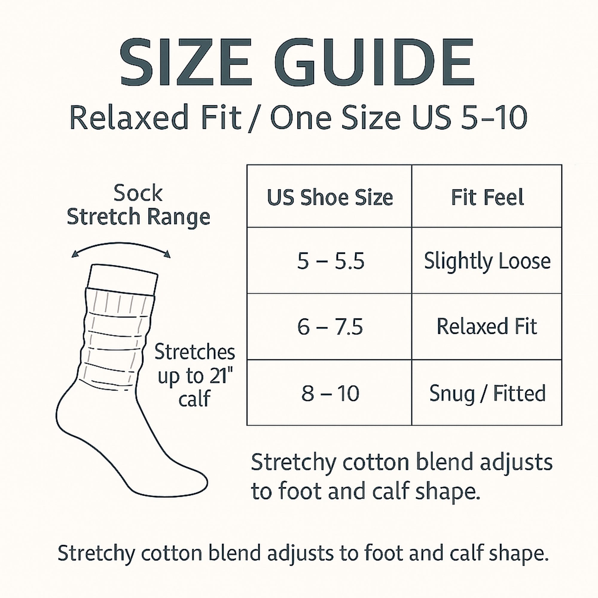 Slouch Socks for Women, Cotton Lightweight Breathable, Knee High or Scrunch, 1 Pair, Fits Shoe Sizes 5-10