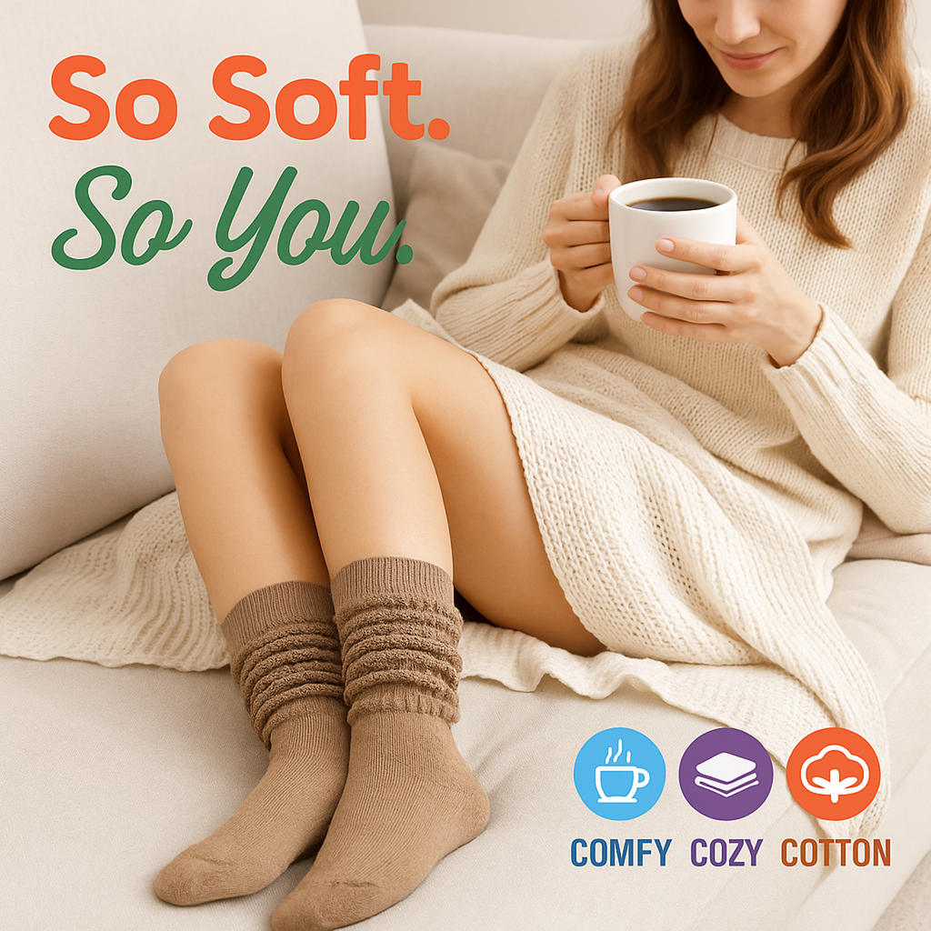 Women's Extra Long Heavy Slouch Cotton Socks, designed for comfort, warmth, and versatility. Made from a premium blend of 85% cotton, 13% polyamide, and 2% elastane, these socks offer softness, stretch, and breathability for all-day wear. The extra-long length allows them to be worn knee-high for warmth or scrunched down for a trendy, retro look. Perfect for lounging, casual outfits, workouts, or layering with boots and sneakers, these socks provide a timeless 80s-inspired slouchy style. Each pack includes 3 pairs, fitting women’s shoe sizes 5-10. Machine washable for easy care.