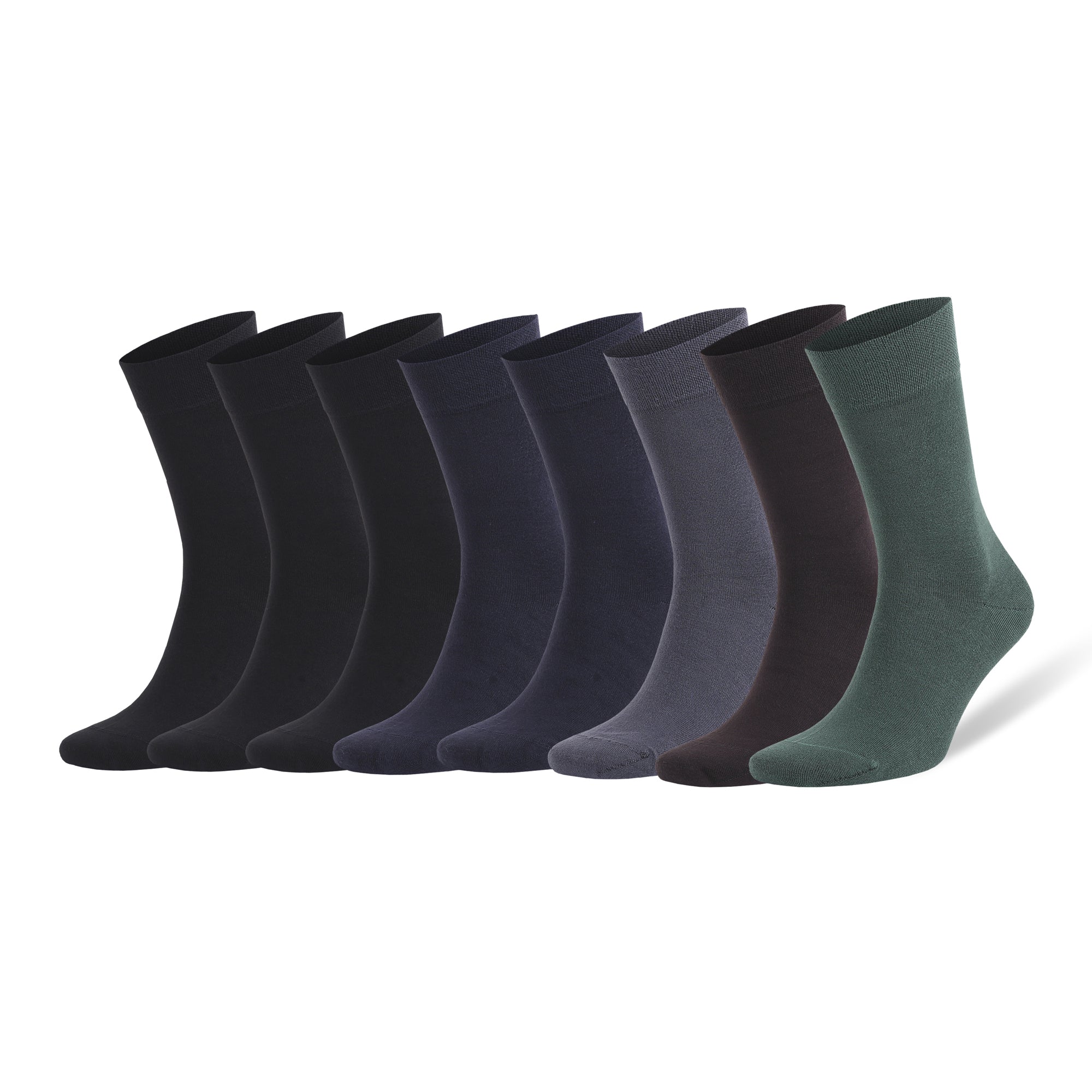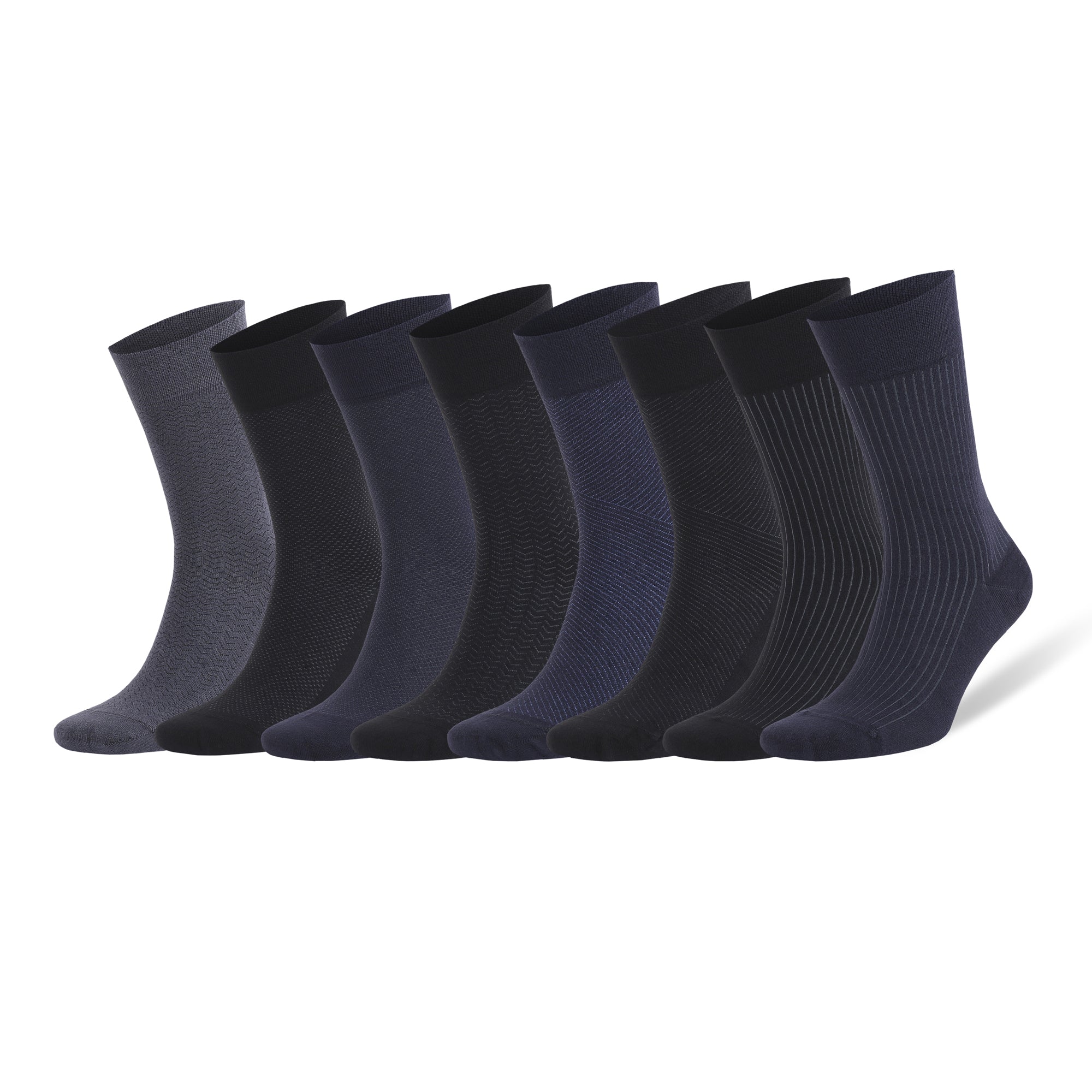 8 pairs of men’s dress socks in assorted classic colors.