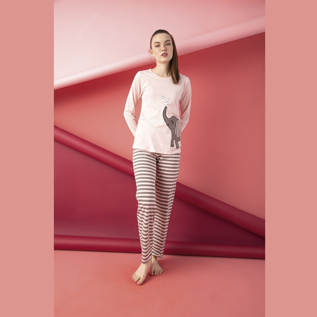 Junior Women’s Cotton Pajama Set 2-Piece Long Sleeve Top & Pants Cute Print Sleepwear