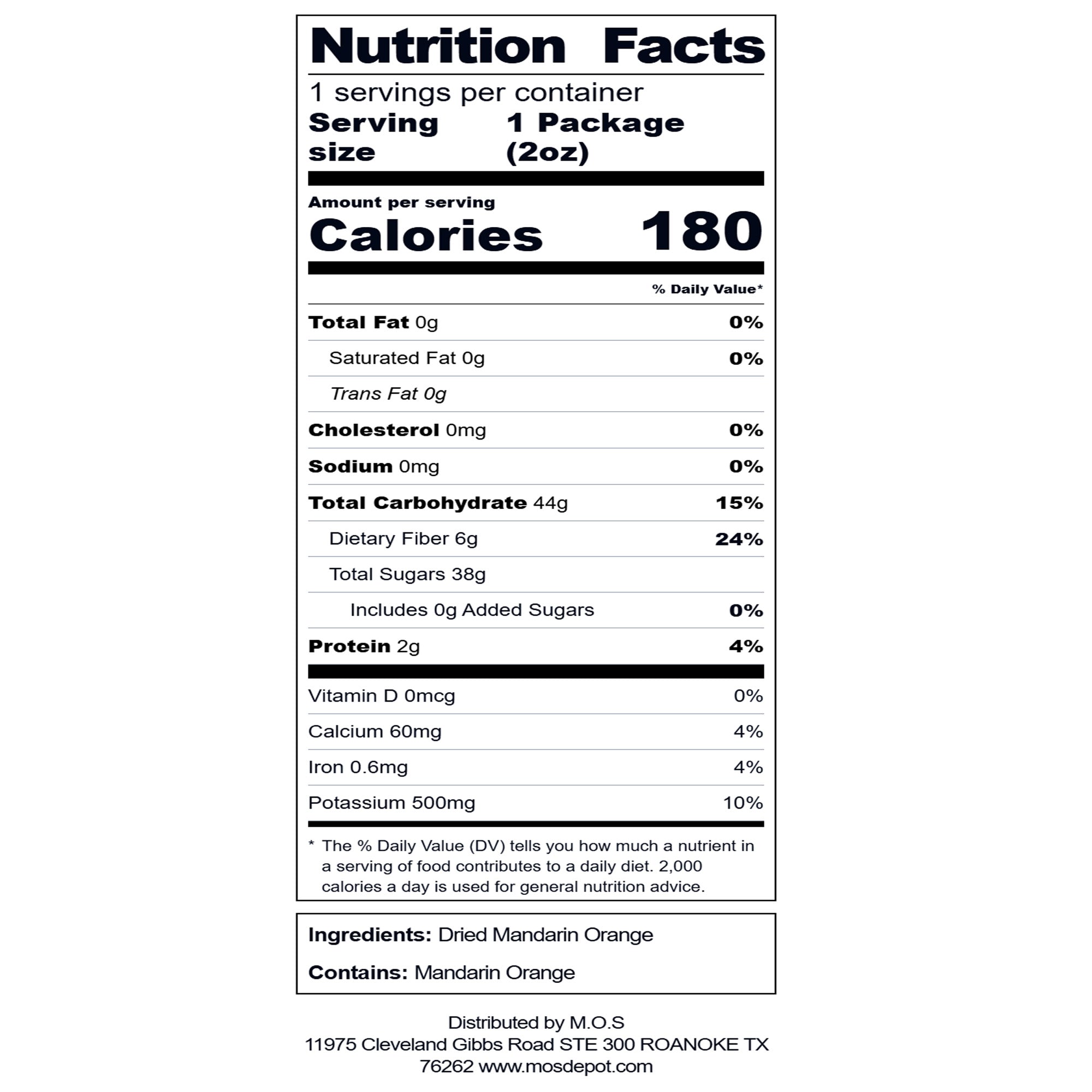 One (1) resealable 2 oz pouch of M.O.S® Dried Mandarin Orange Slices.