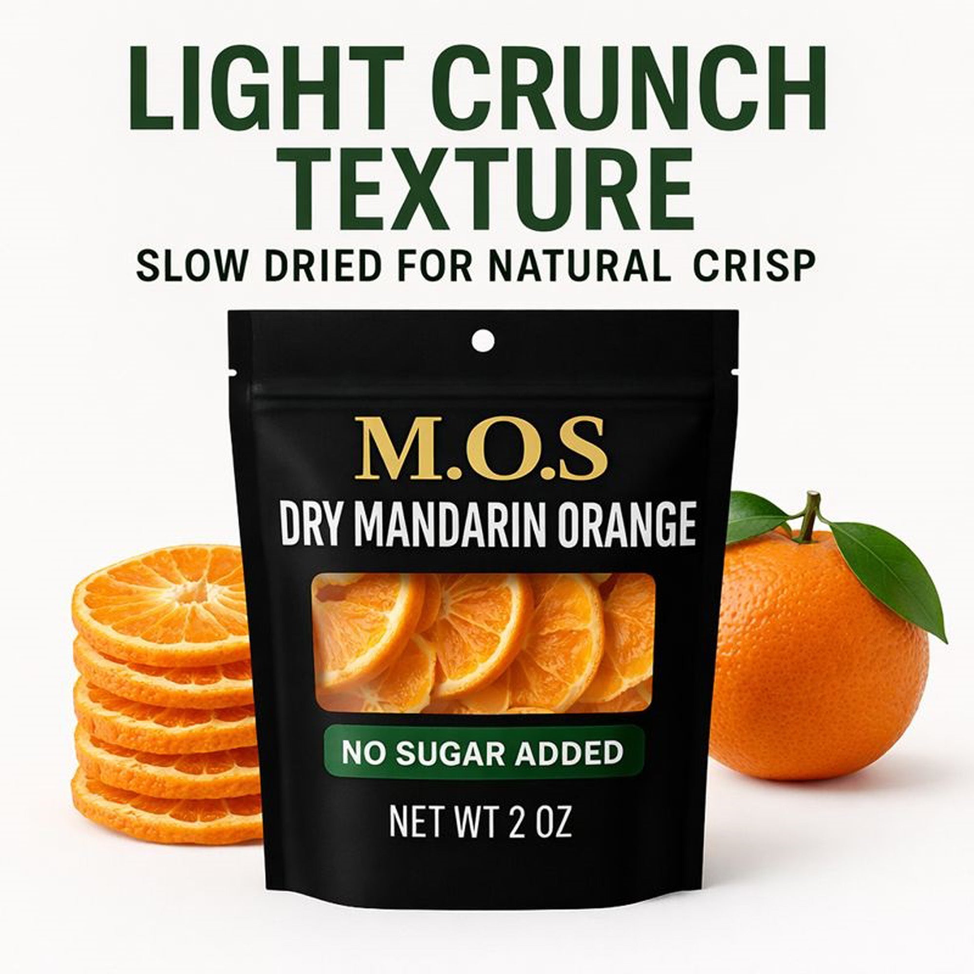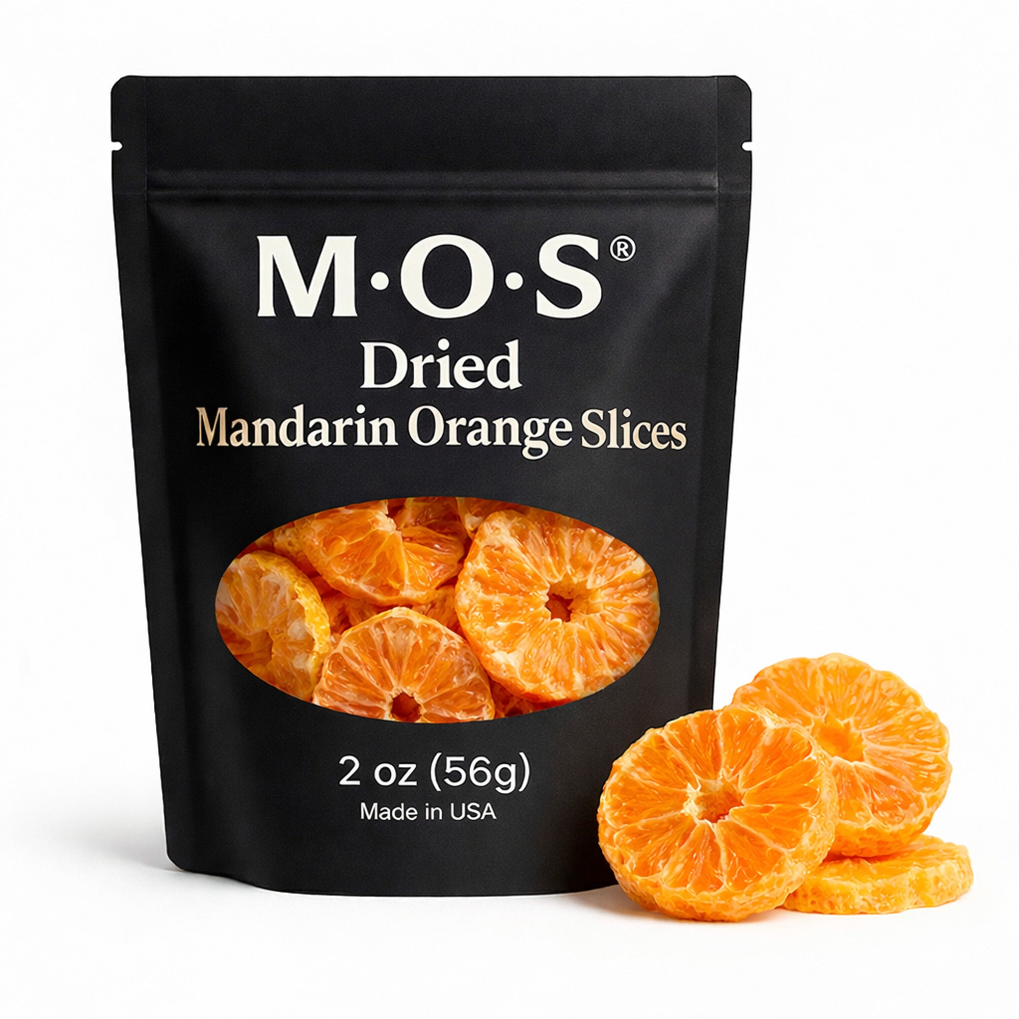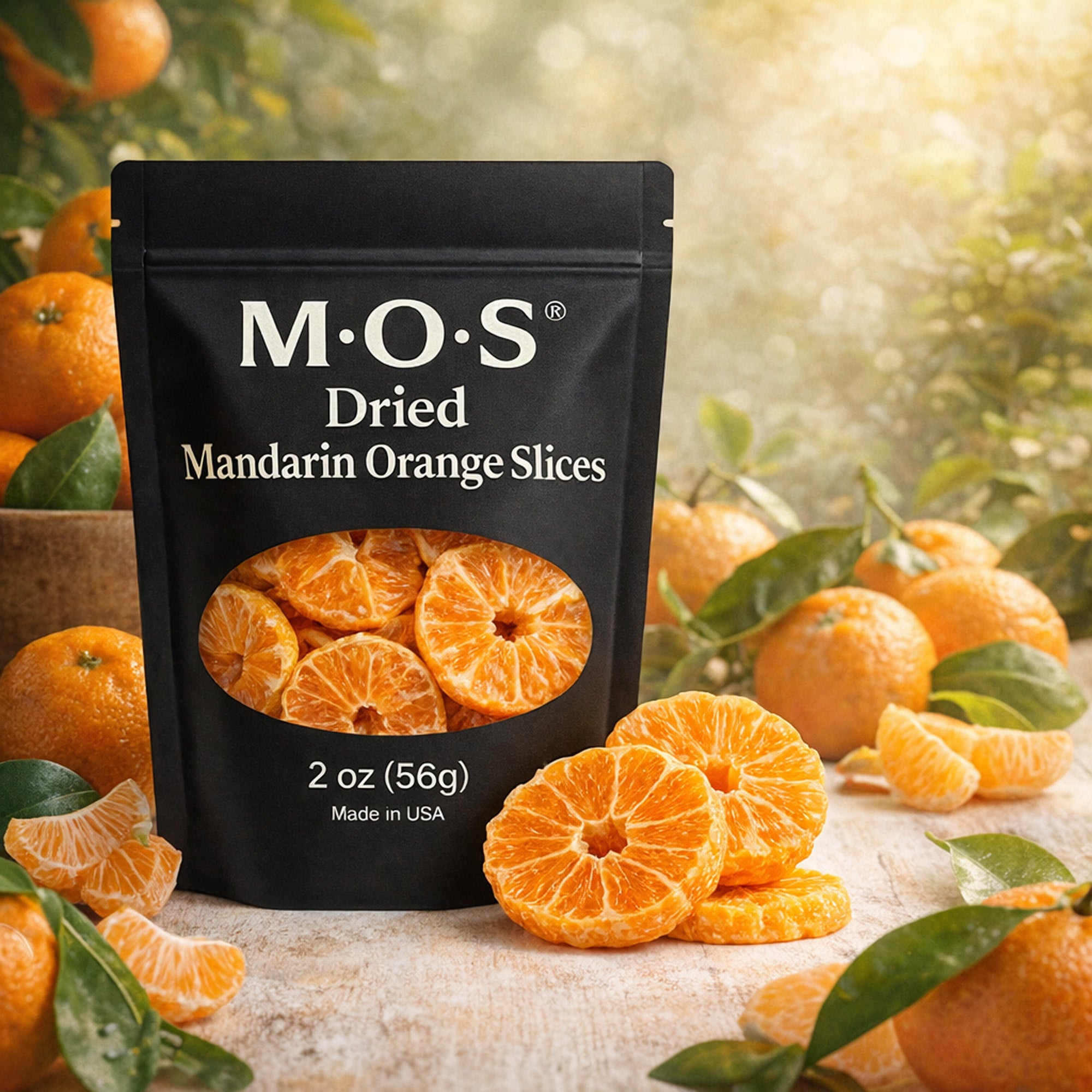 Enjoy the naturally bright flavor of citrus with M.O.S® Dried Mandarin Orange Slices, crafted in the USA from carefully selected mandarin oranges. These premium mandarins are gently sliced and slowly dehydrated to help preserve their natural sweetness, aroma, and vibrant citrus character—without added sugar or artificial ingredients.