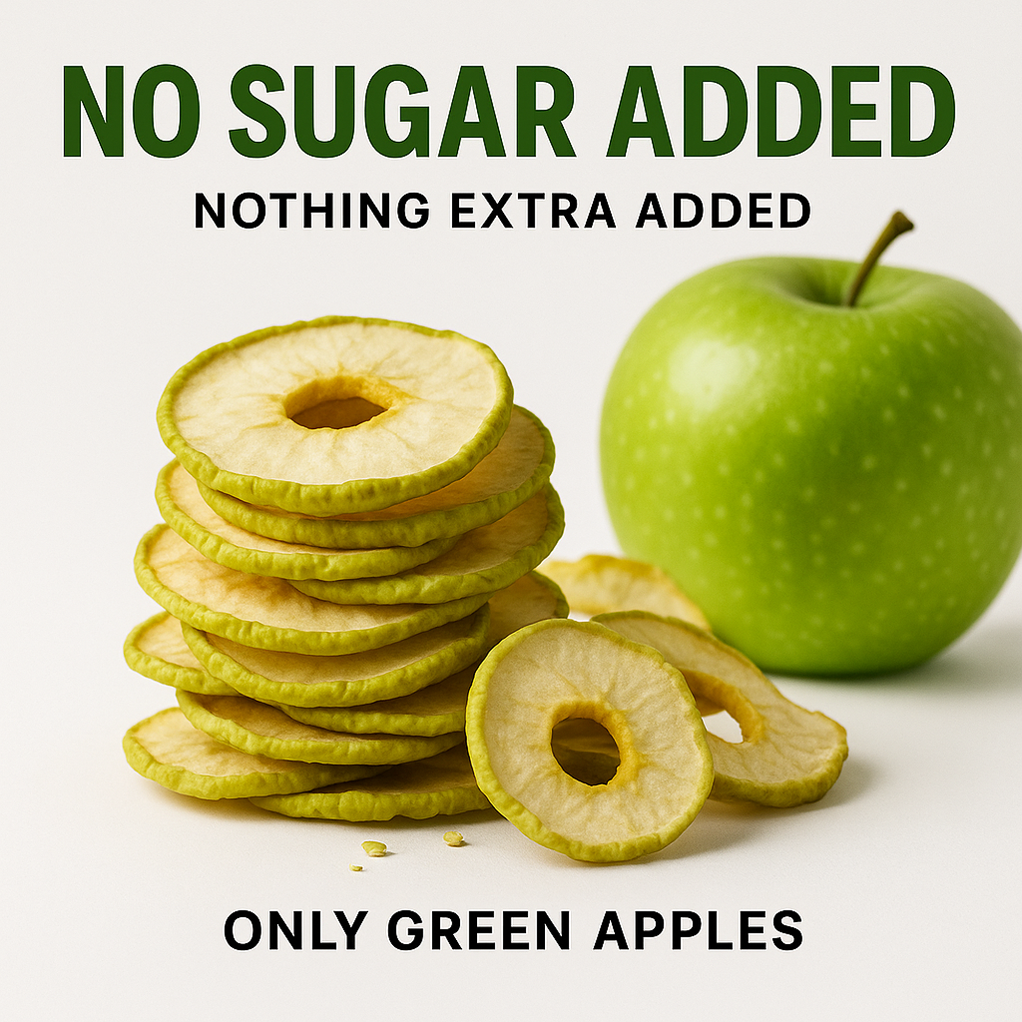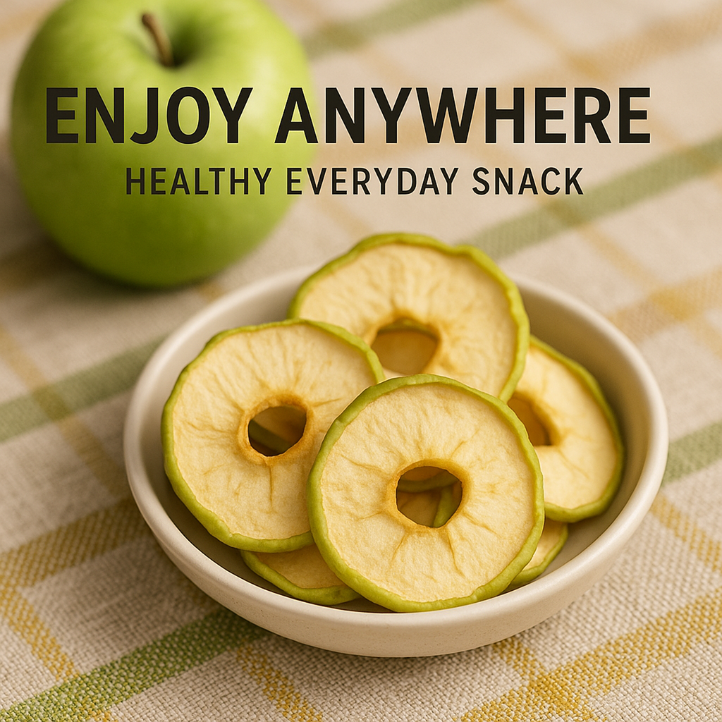Slow dried at low temperature to maintain balanced flavor and texture. Crisp bite with natural sweetness that comes only from real apples. Perfect for school, work, and travel.
