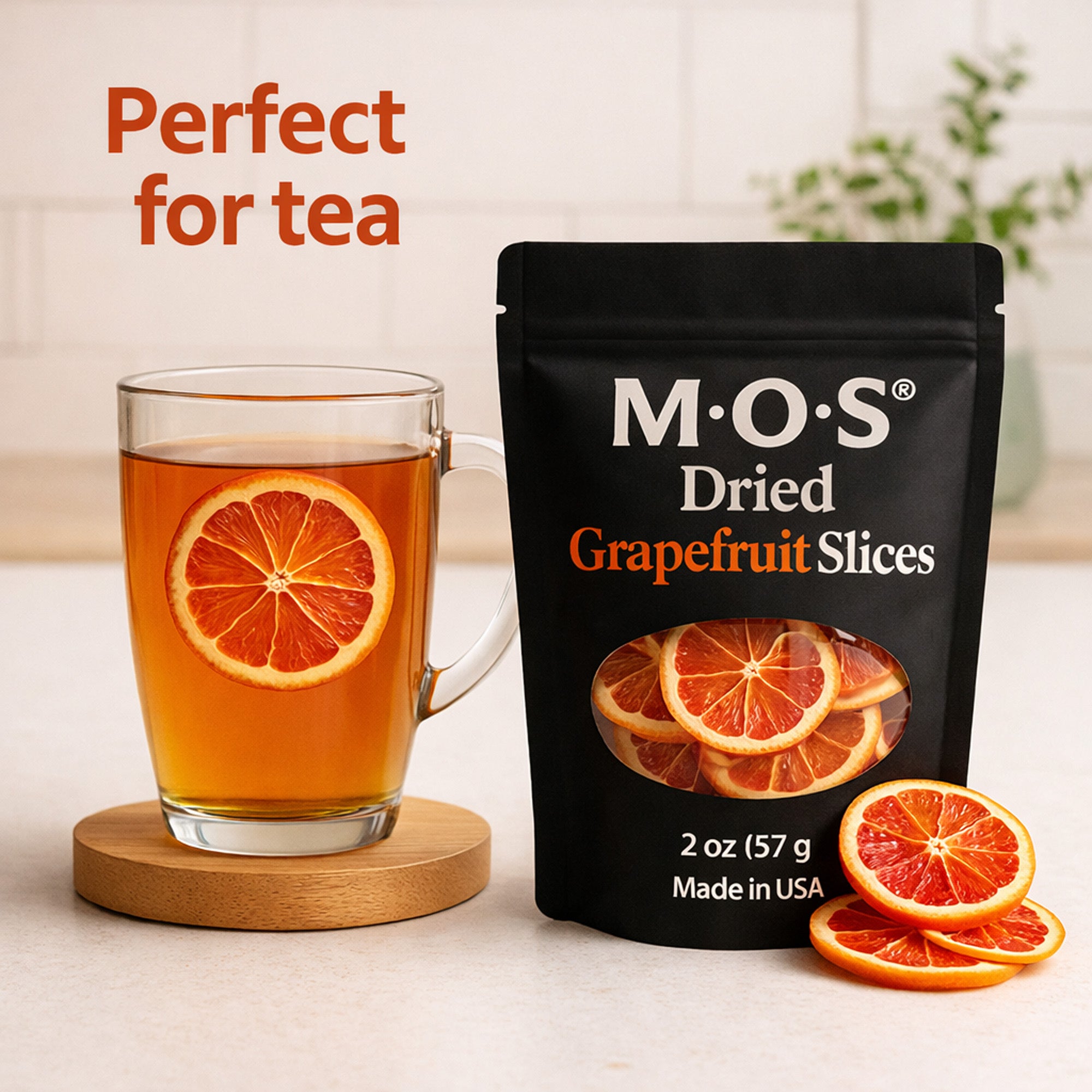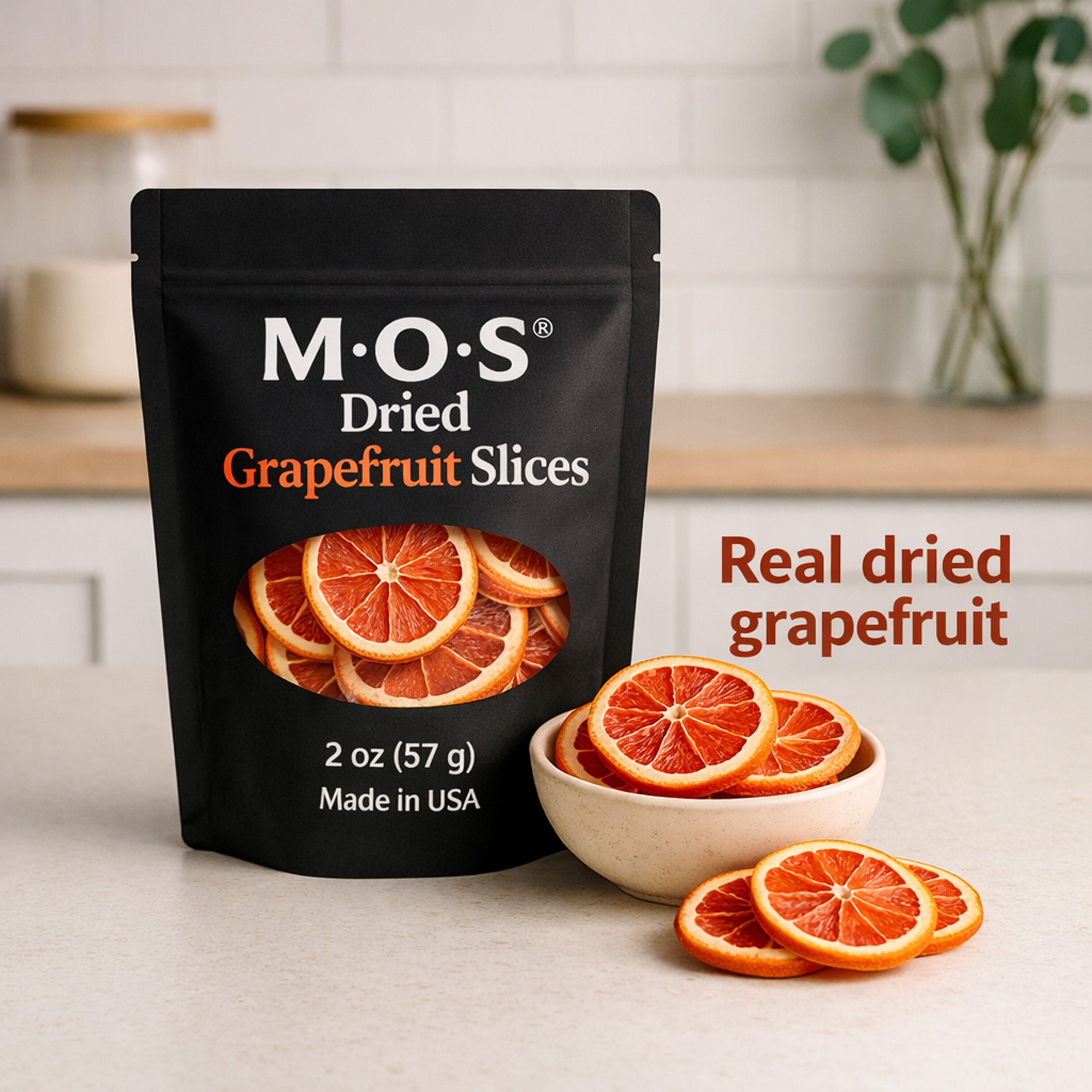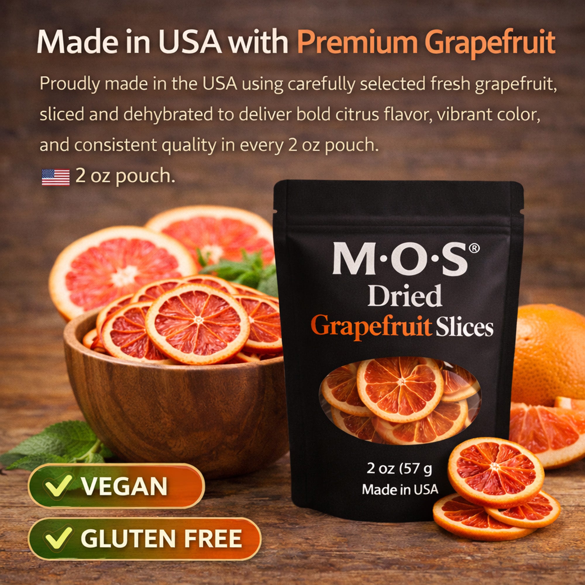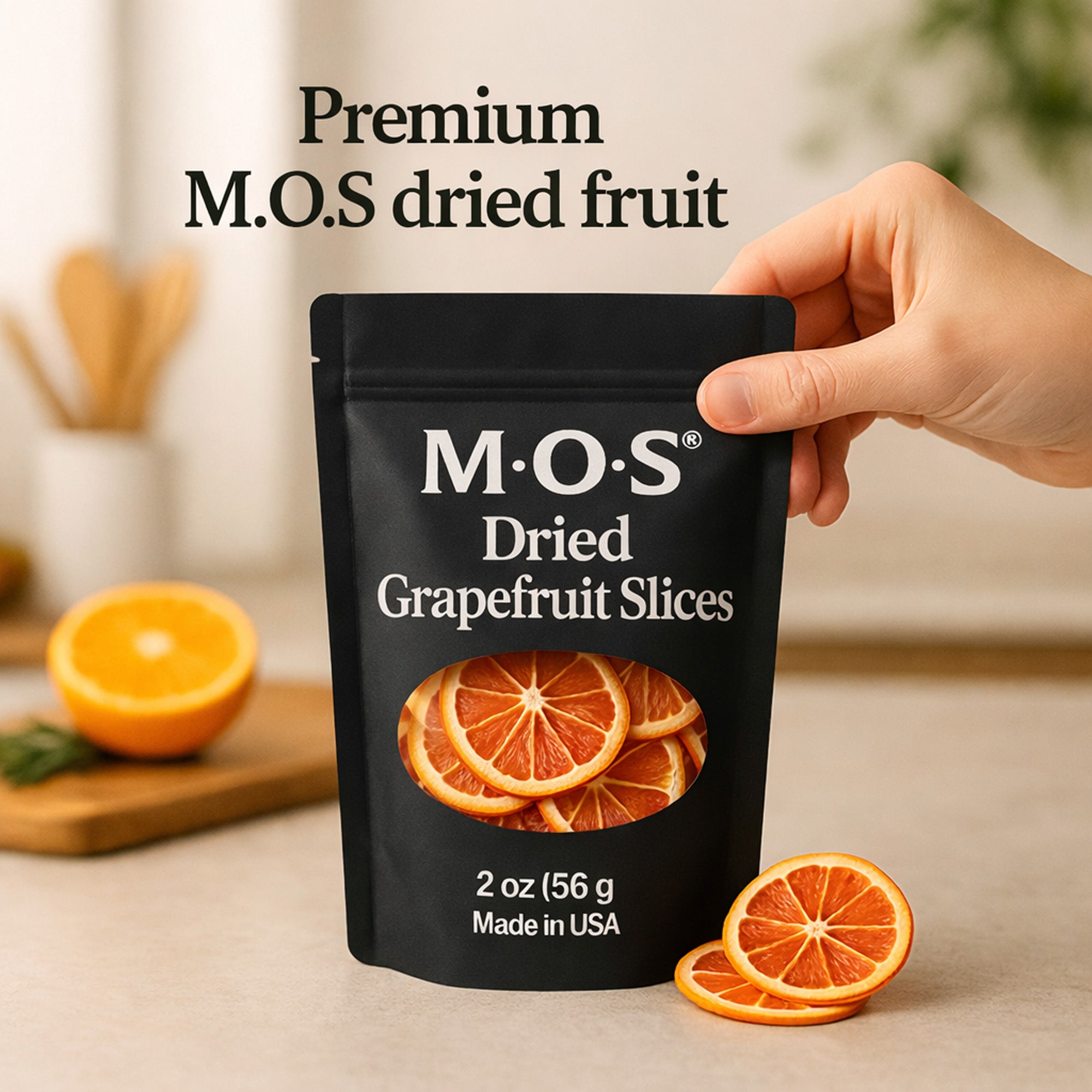 Packaged in a convenient 2 oz resealable pouch, M.O.S® Dried Grapefruit Slices are easy to store and stay fresh between uses. They are vegan friendly, gluten free, and suitable for a wide range of dietary preferences. Popular among citrus lovers, home bartenders, tea drinkers, and culinary enthusiasts, these dried grapefruit slices are ideal for beverages, baking, charcuterie boards, desserts, and decorative food presentation.