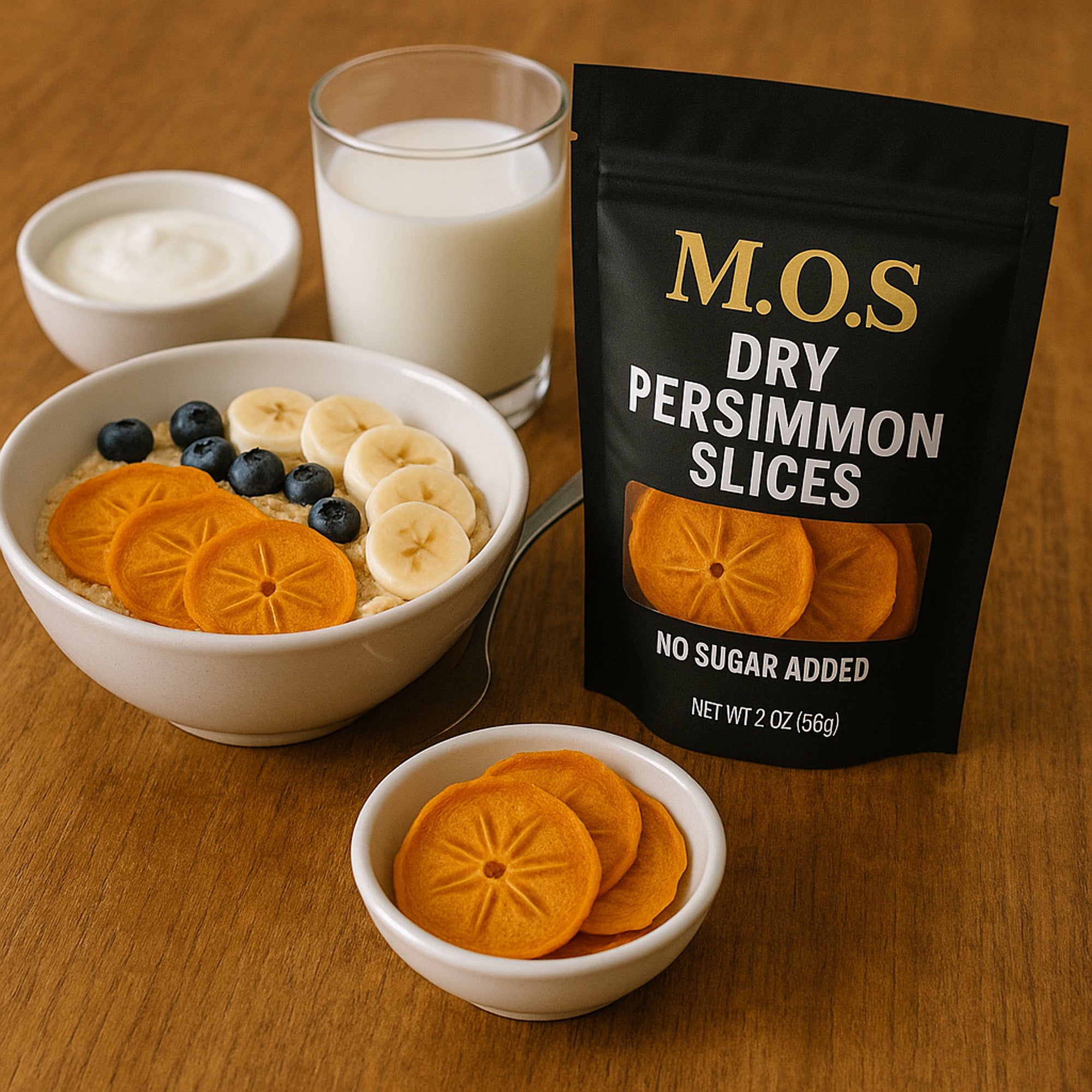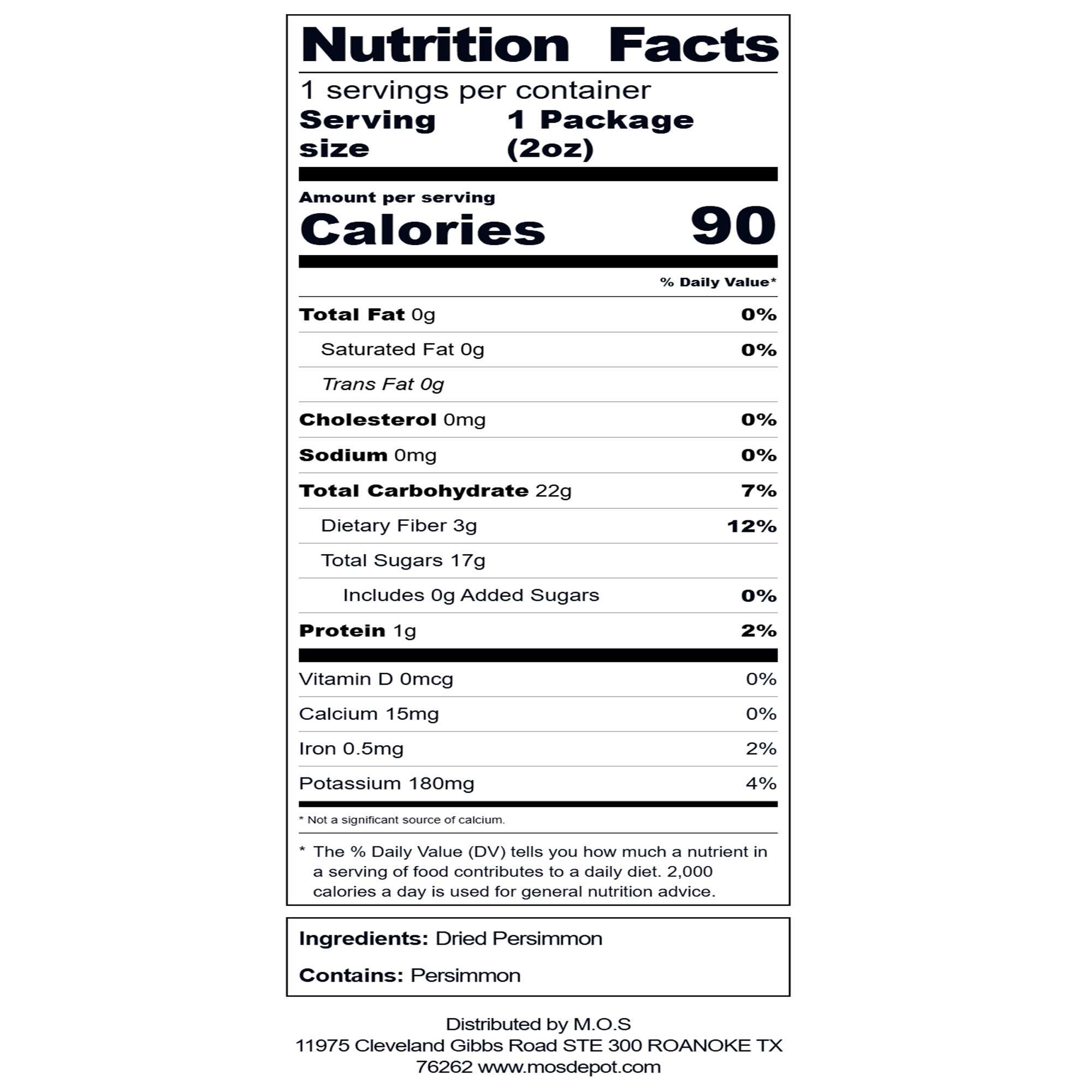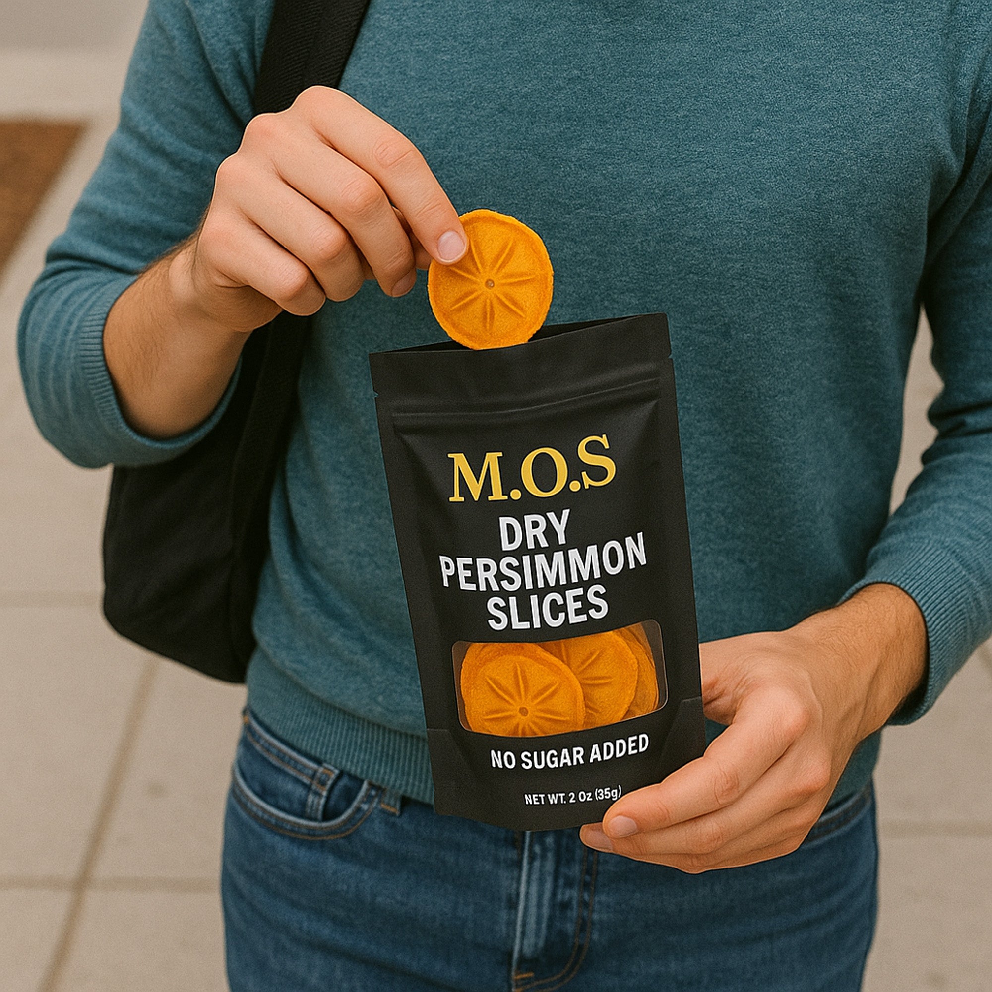 Packaged in a convenient 2 oz resealable pouch, M.O.S® Dried Persimmon Slices stay fresh and ready to enjoy wherever your day takes you. Snack on them straight from the bag, or add them to yogurt, oatmeal, trail mix, or baked goods for a naturally sweet boost.