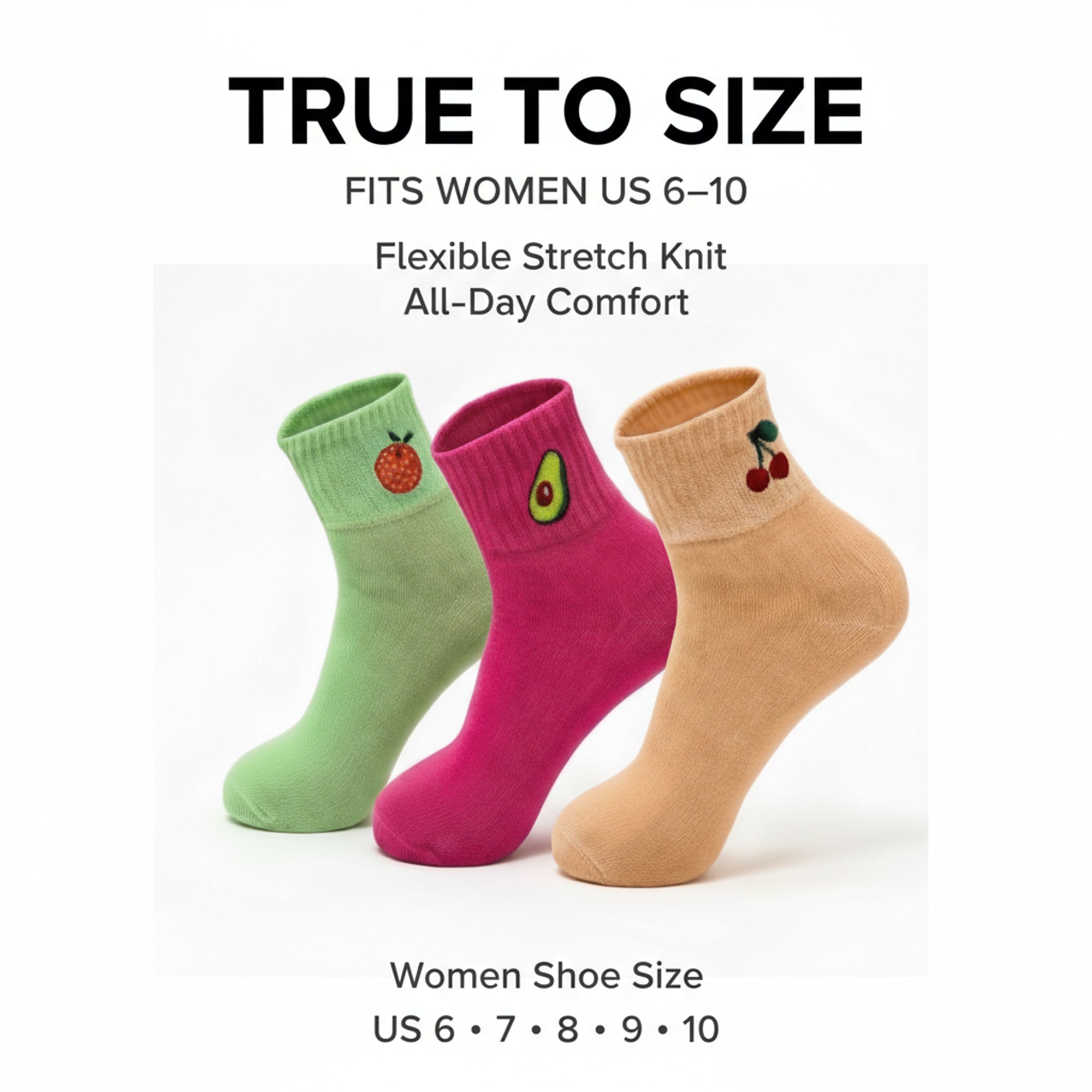 These socks are designed to fit women’s US shoe sizes 6–10, offering flexibility and comfort for most foot shapes. Whether you're heading to school, work, running errands, or relaxing at home, these colorful casual socks bring comfort and style together.