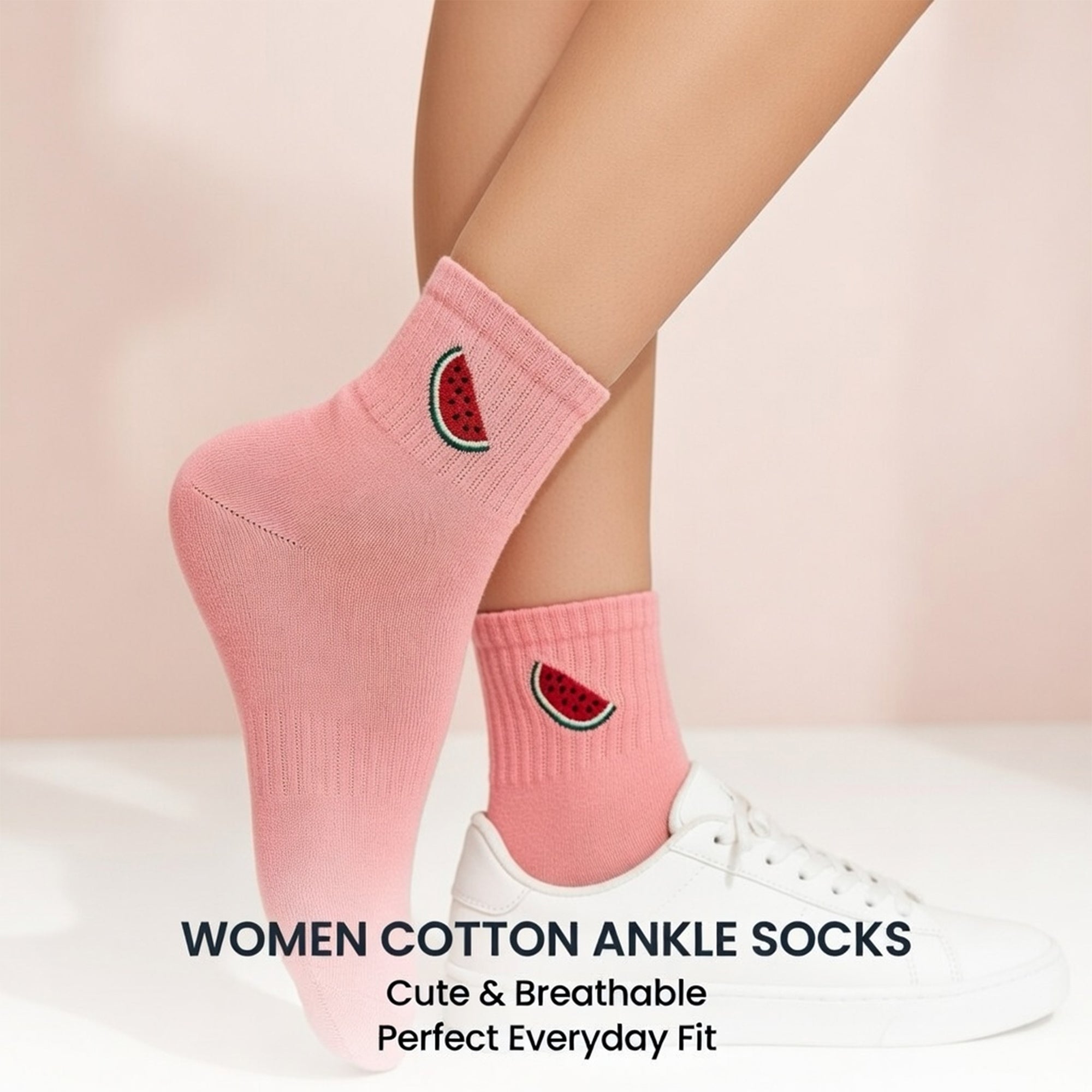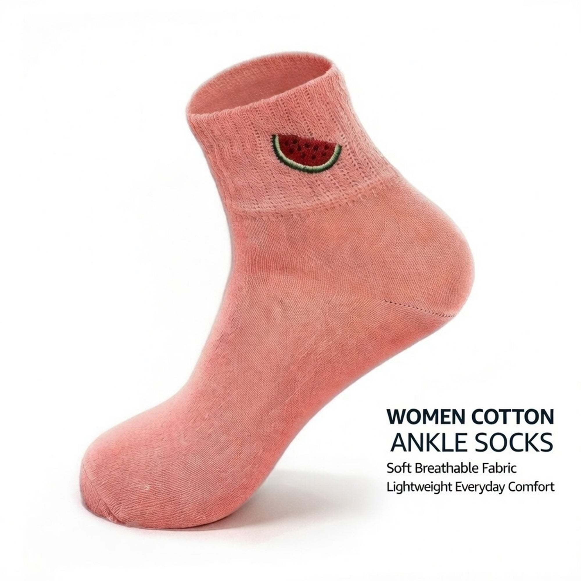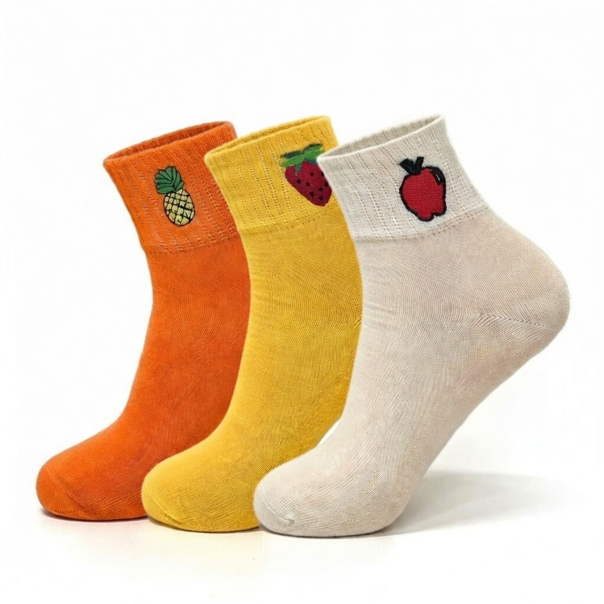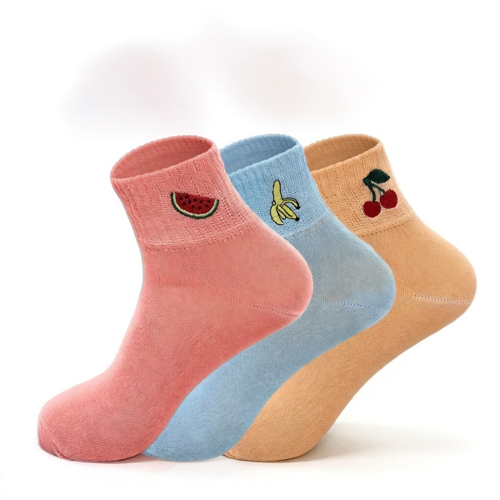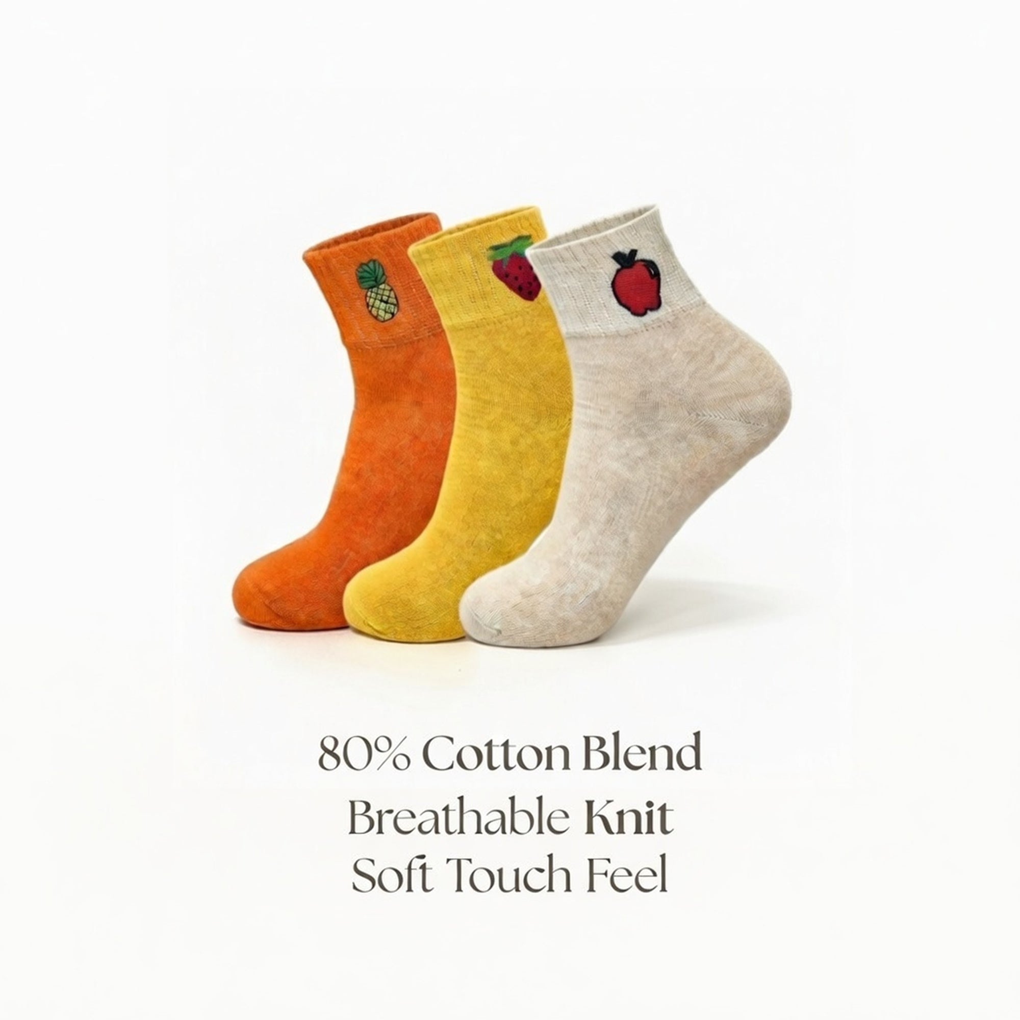 Cute Cotton Ankle Socks for Women 3 Pairs Fruit Embroidered Casual Everyday Socks Soft Breathable Knit US Shoe Size 6–10