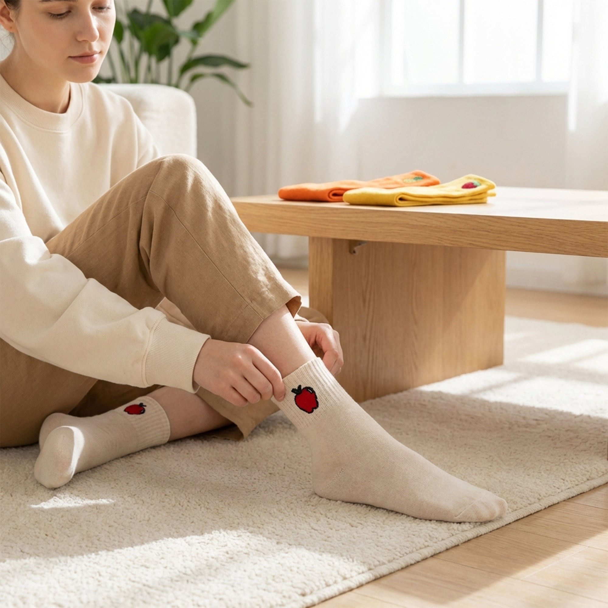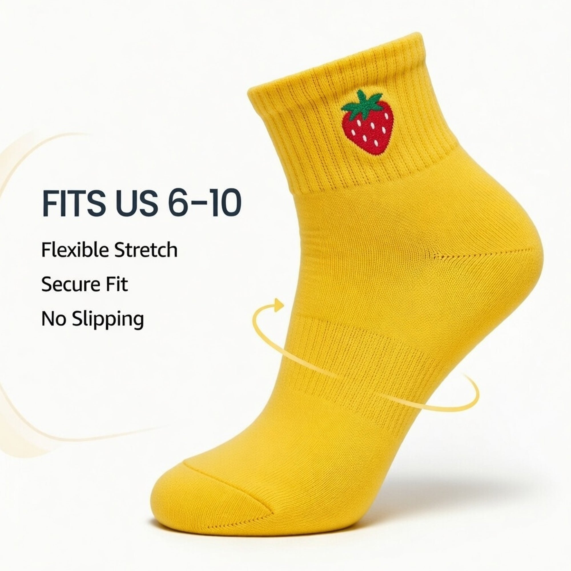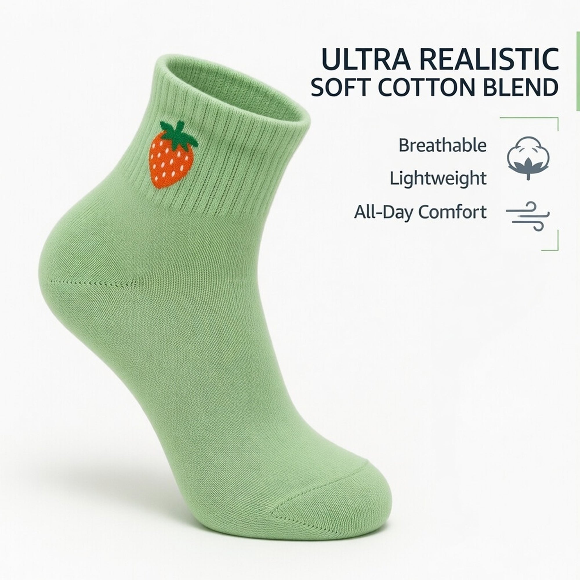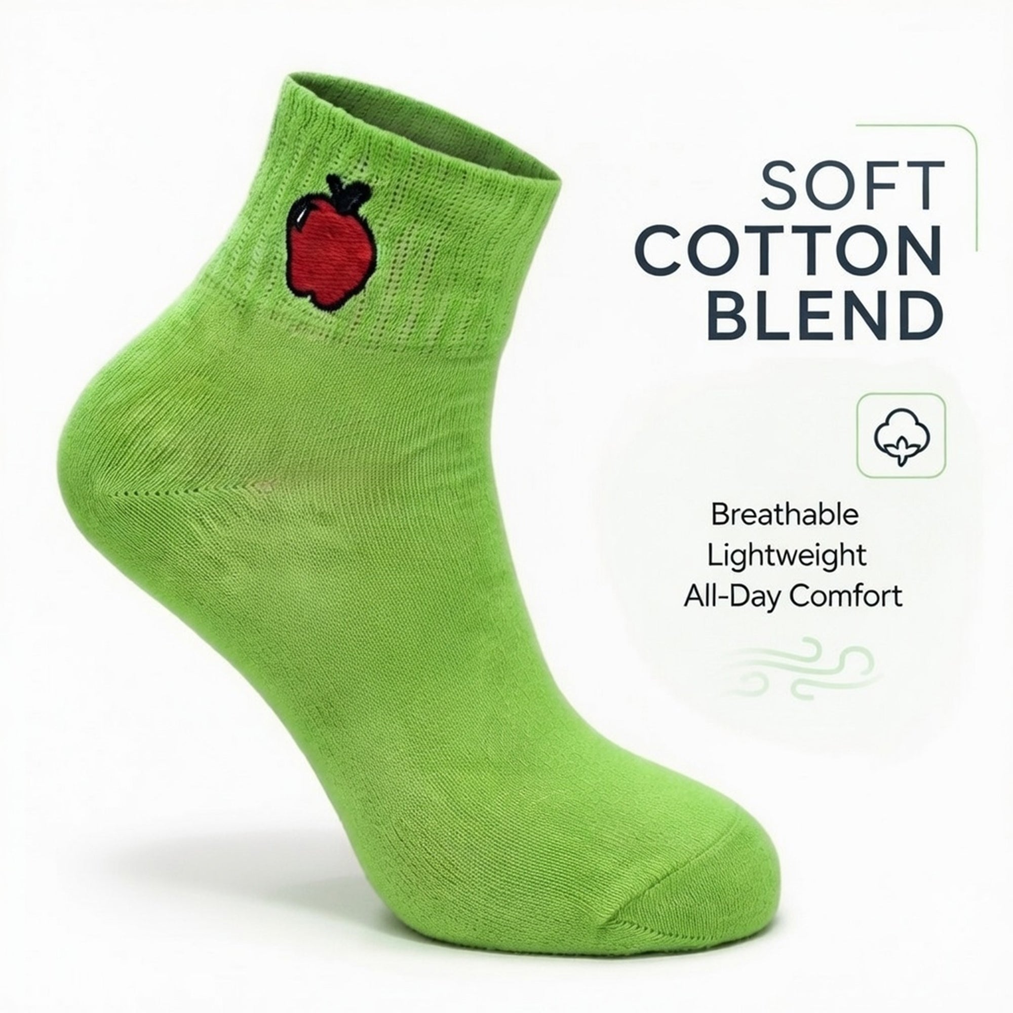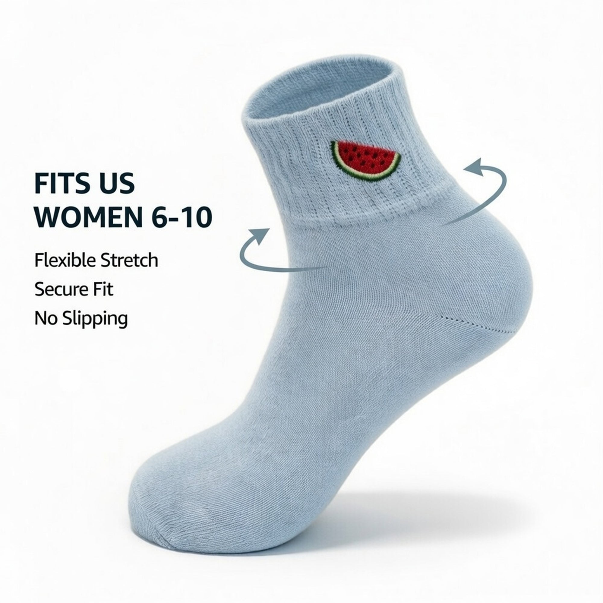 Cute Cotton Ankle Socks for Women 3 Pairs Fruit Embroidered Casual Everyday Socks Soft Breathable Knit US Shoe Size 6–10