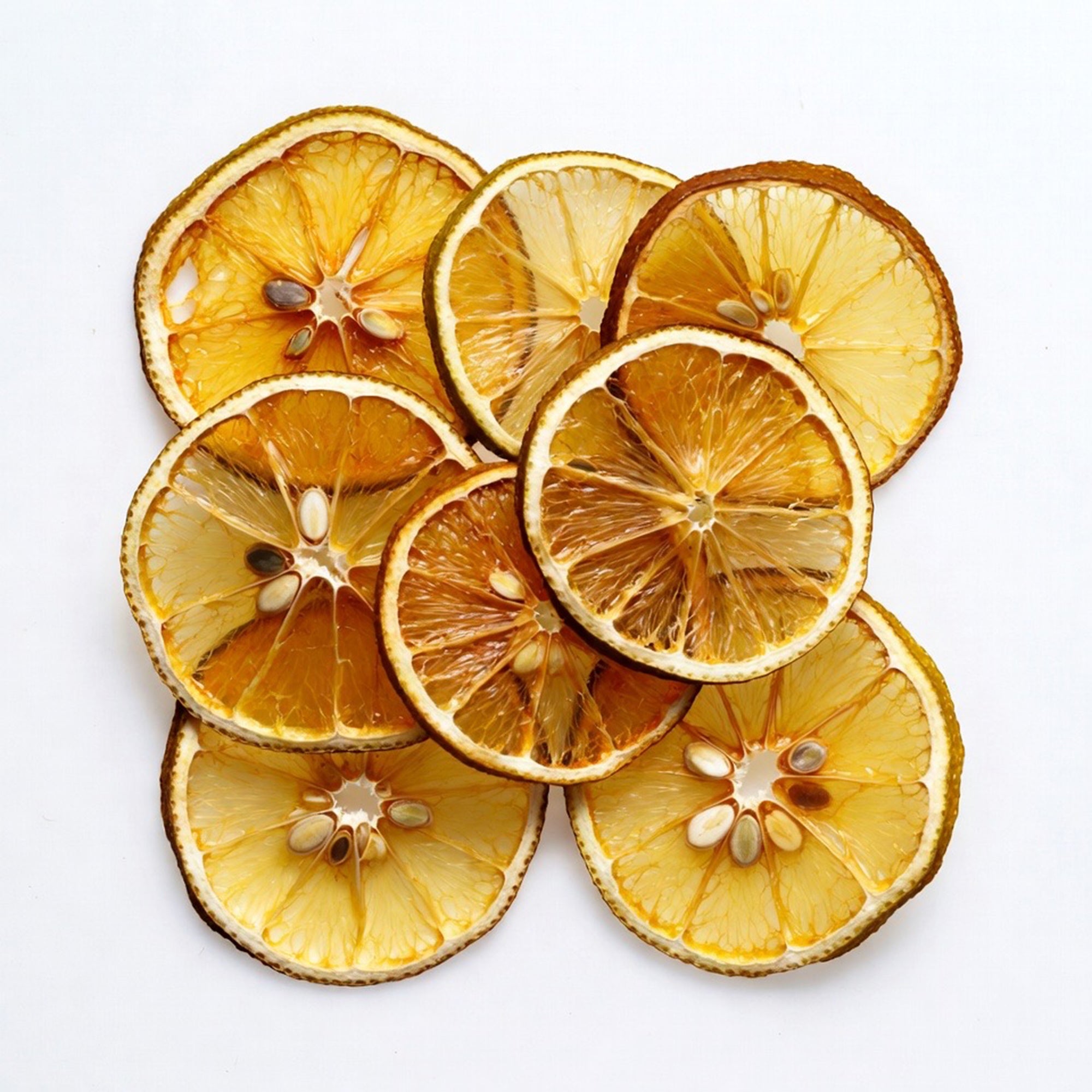 Fully dried lemon slices with a crunchy, crisp bite. Designed for beverages, food preparation, and decorative culinary use.