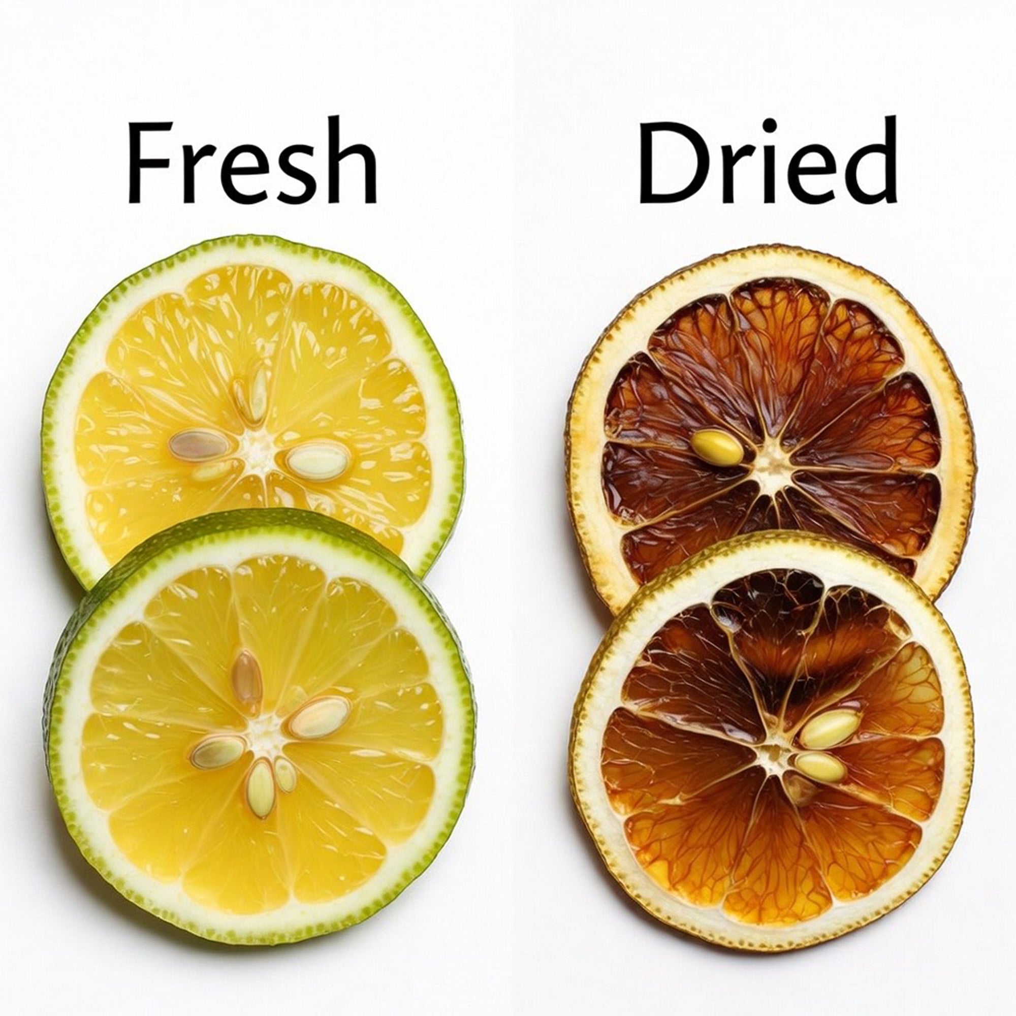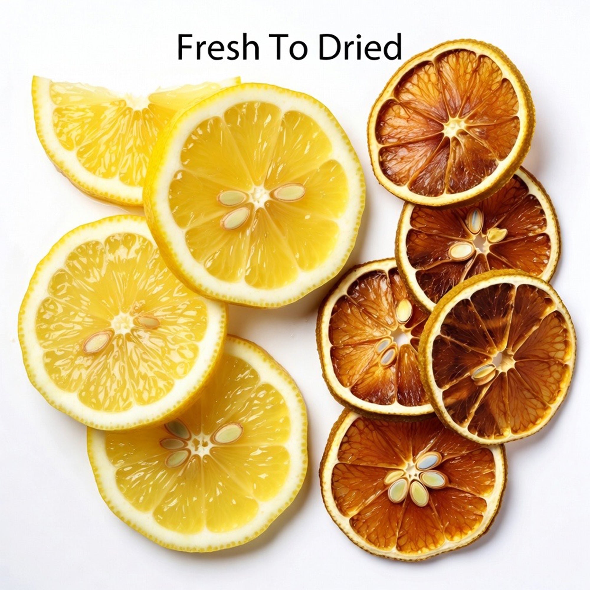 Fresh yellow lemons are slowly dehydrated to remove moisture while preserving natural citrus flavor, aroma, and color without artificial processing.