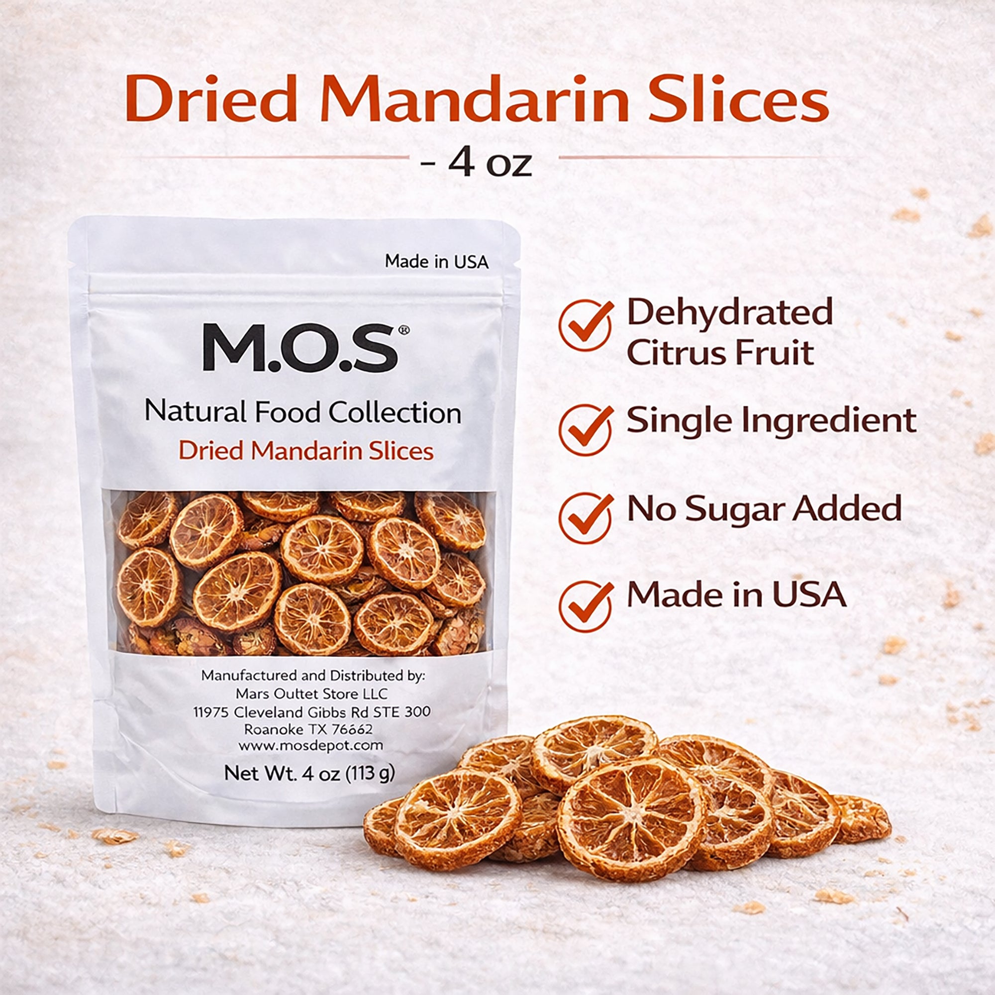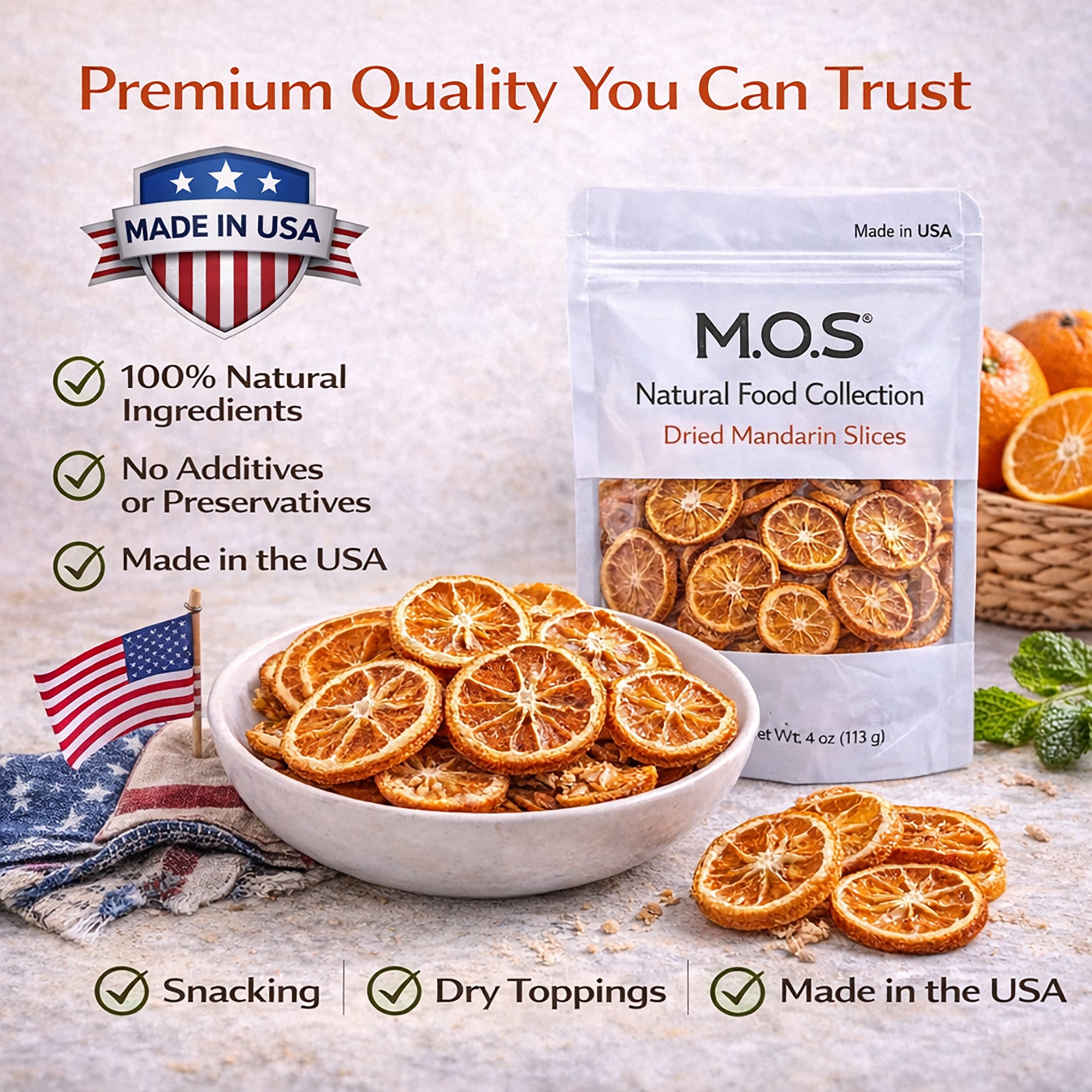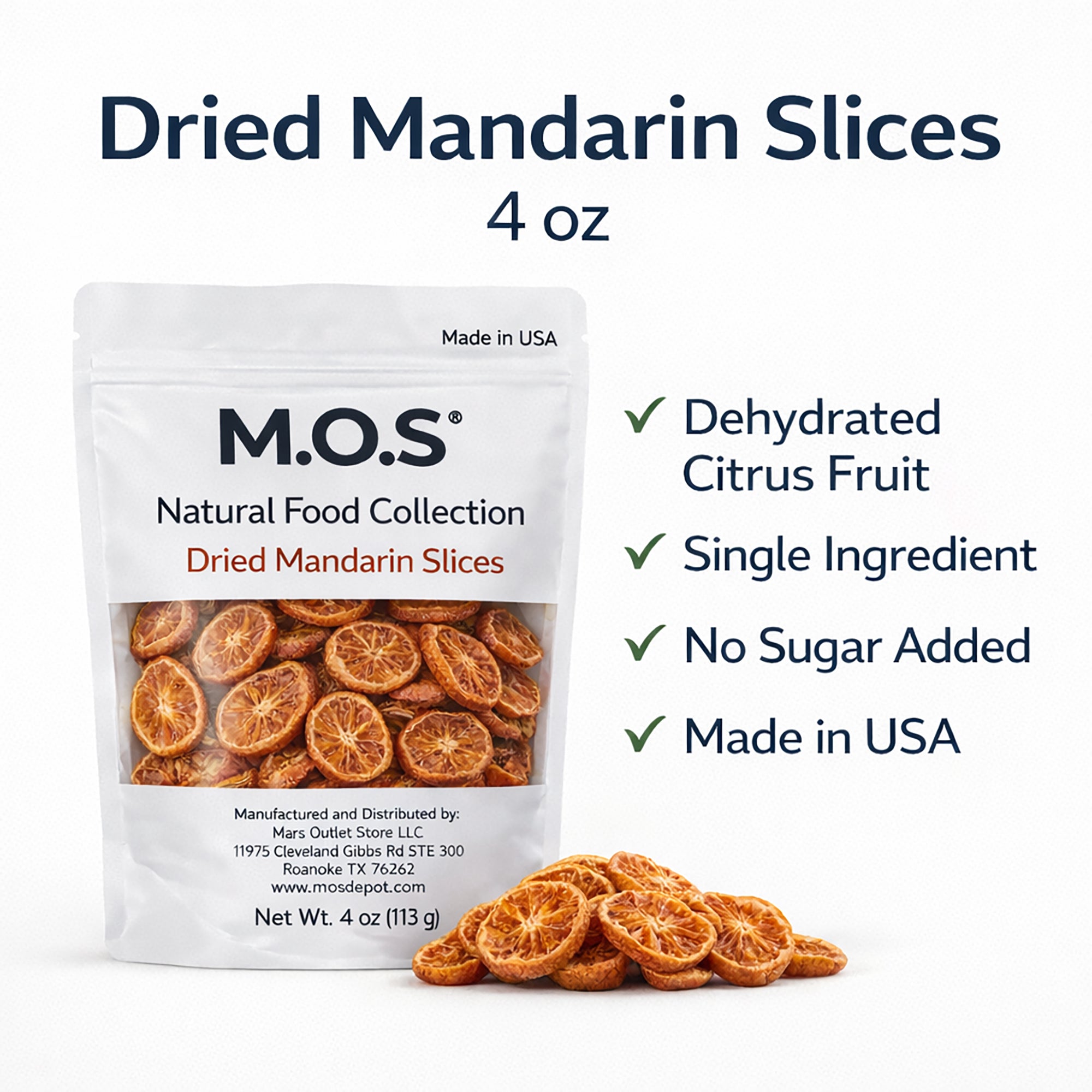 Dried mandarin orange slices are ideal as a plant based snack and fit vegan and vegetarian lifestyles. They are also commonly used as dehydrated citrus slices for tea blends, herbal infusions, baking recipes, desserts, trail mixes, and cocktail garnish. Their versatility makes them suitable for everyday snacking as well as culinary and beverage applications. Packaged in a resealable pouch to help maintain freshness, aroma, and texture after opening. The dehydration process supports long shelf life, making this product a reliable pantry staple for regular use. Manufactured and packaged in the USA following quality handling standards, these dried mandarin orange slices offer consistency, convenience, and dependable quality. Designed for customers searching dried mandarin slices, dried mandarin orange, dehydrated citrus fruit, no sugar added dried fruit, vegan fruit snacks, and single ingredient dried fruit products. Dried mandarin slices dried mandarin orange dehydrated citrus fruit mandarin dried fruit mandarin orange dried slices dried citrus slices no sugar added dried fruit vegan dried fruit single ingredient dried fruit plant based fruit snack dehydrated mandarin citrus snack dried fruit snack made in usa dried fruit tea garnish citrus cocktail garnish dried fruit baking citrus dried mandarin snack natural dried fruit citrus.