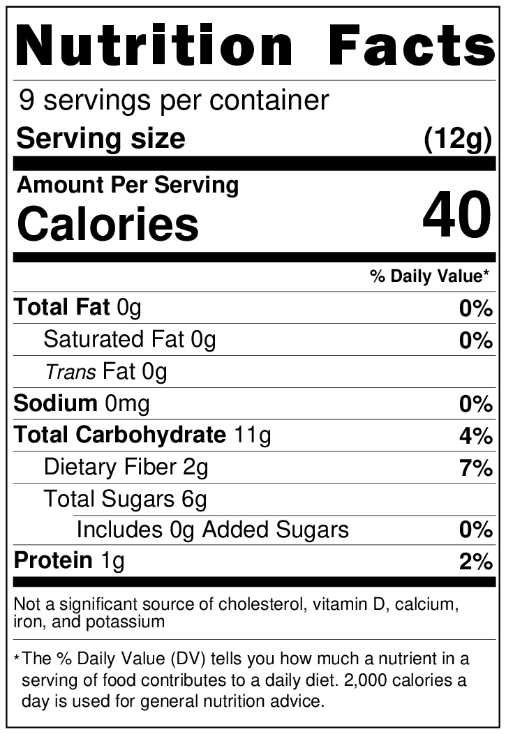This product contains only one ingredient, mandarin orange. No added sugar, no preservatives, no artificial colors, and no artificial flavors. The natural sweetness comes only from the fruit itself, making these dried mandarin orange slices a clean label option for customers seeking simple ingredient dehydrated fruit snacks.