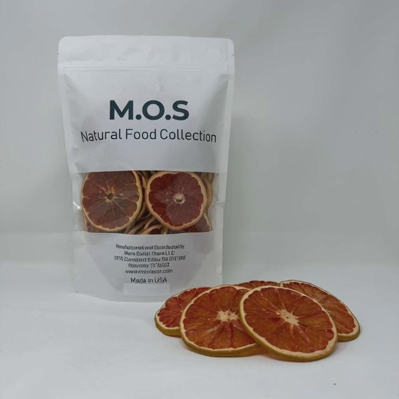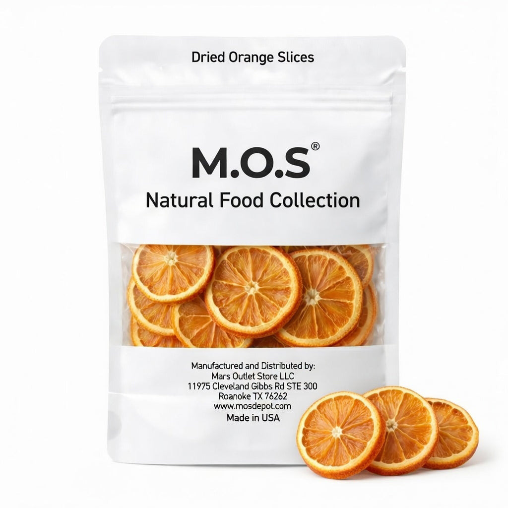 M.O.S Dried Orange Slices are ideal for tea, cocktails, baking, and snacking. Packaged in a resealable pouch, they are easy to store and convenient to use while maintaining freshness over time.