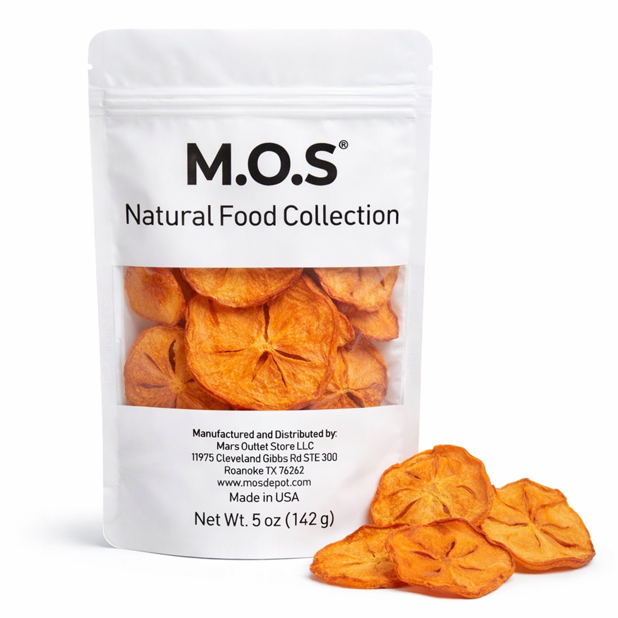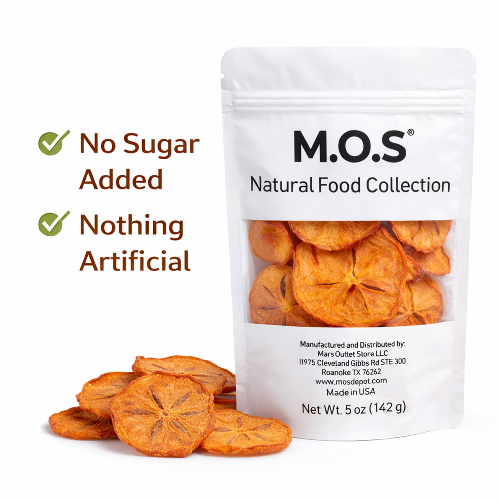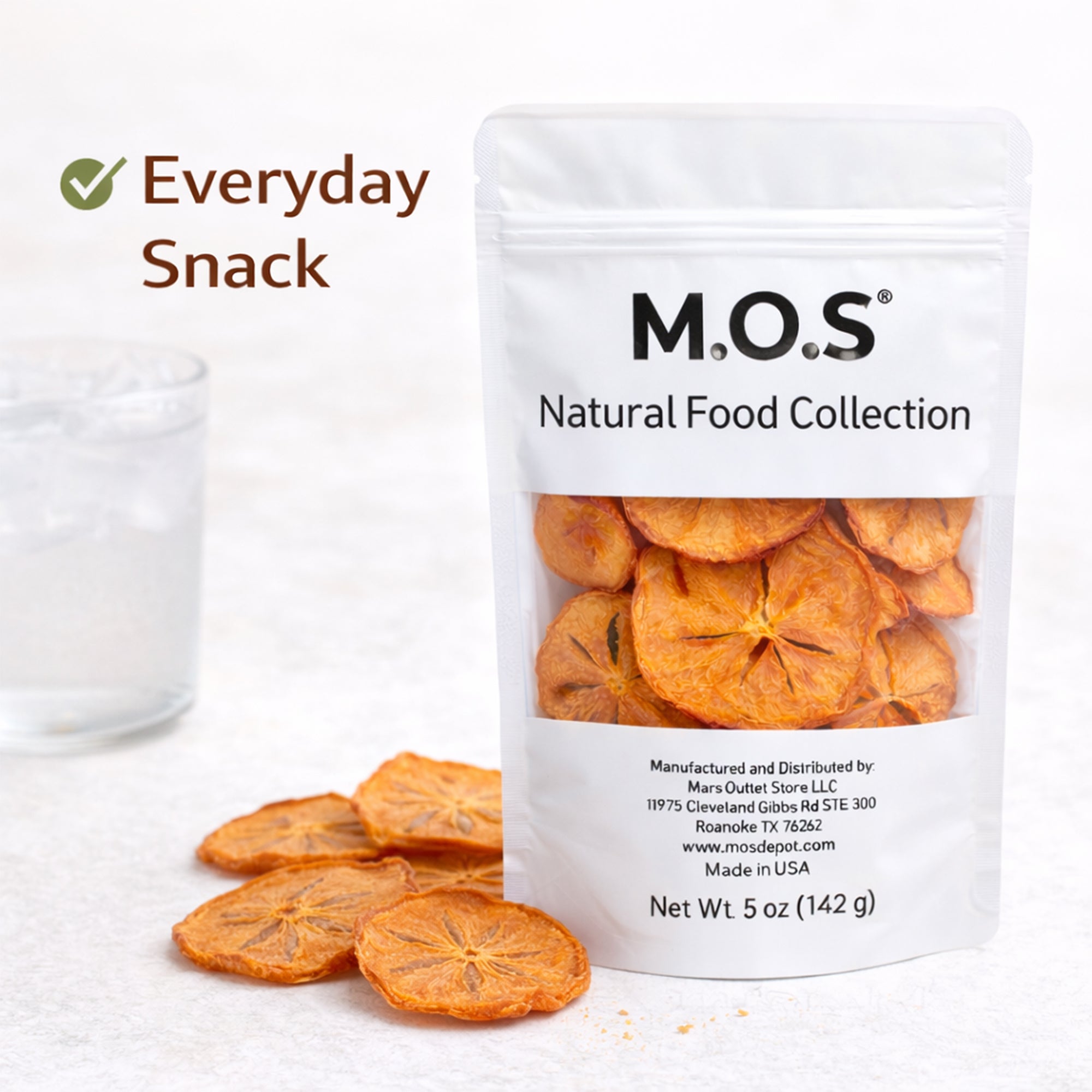 Naturally crispy taste of M.O.S Dried Persimmon Slices, made from real persimmons and carefully dried to preserve their texture and flavor. These thin sliced persimmon chips are fully dried to deliver a satisfying crunch without added sugar, preservatives, or artificial ingredients.