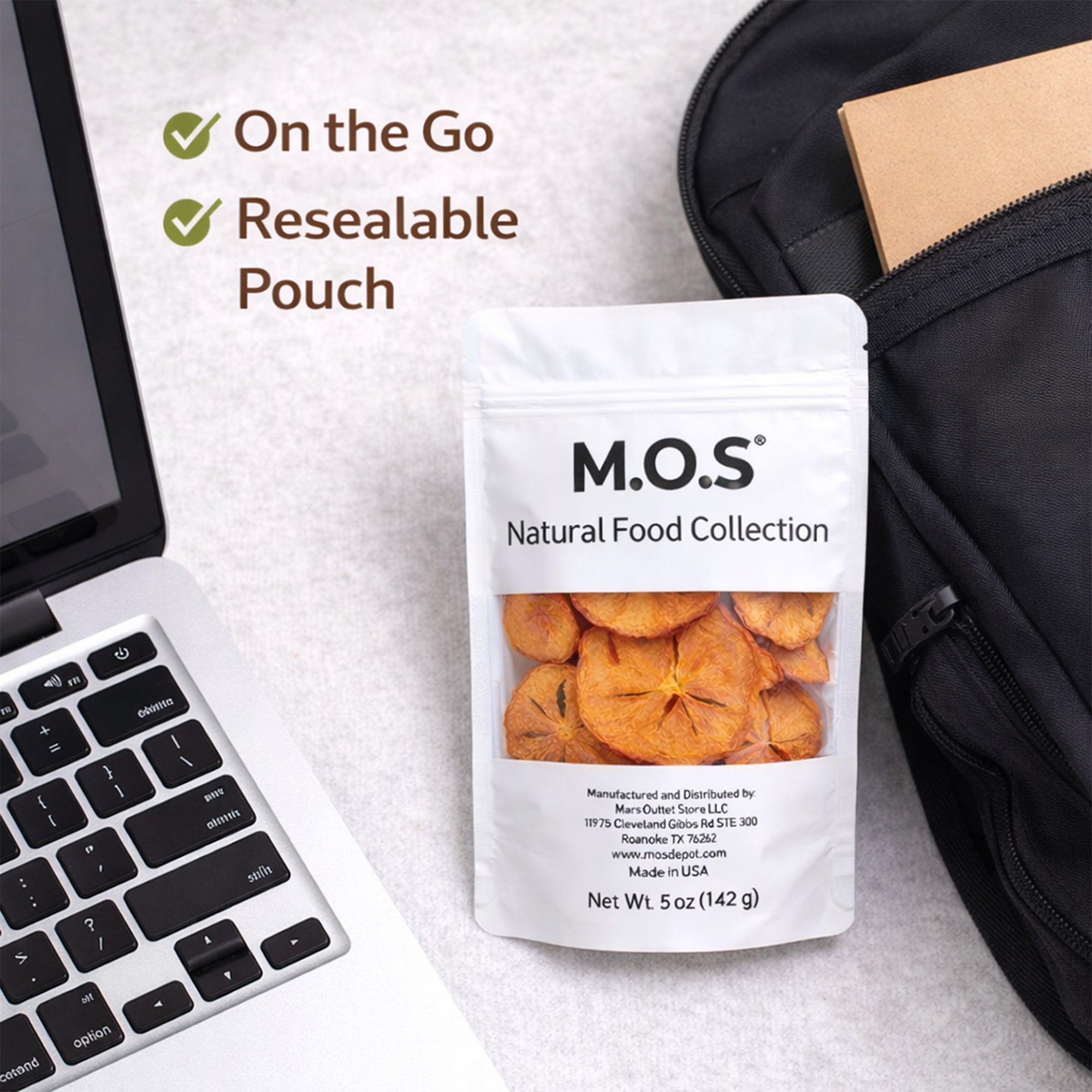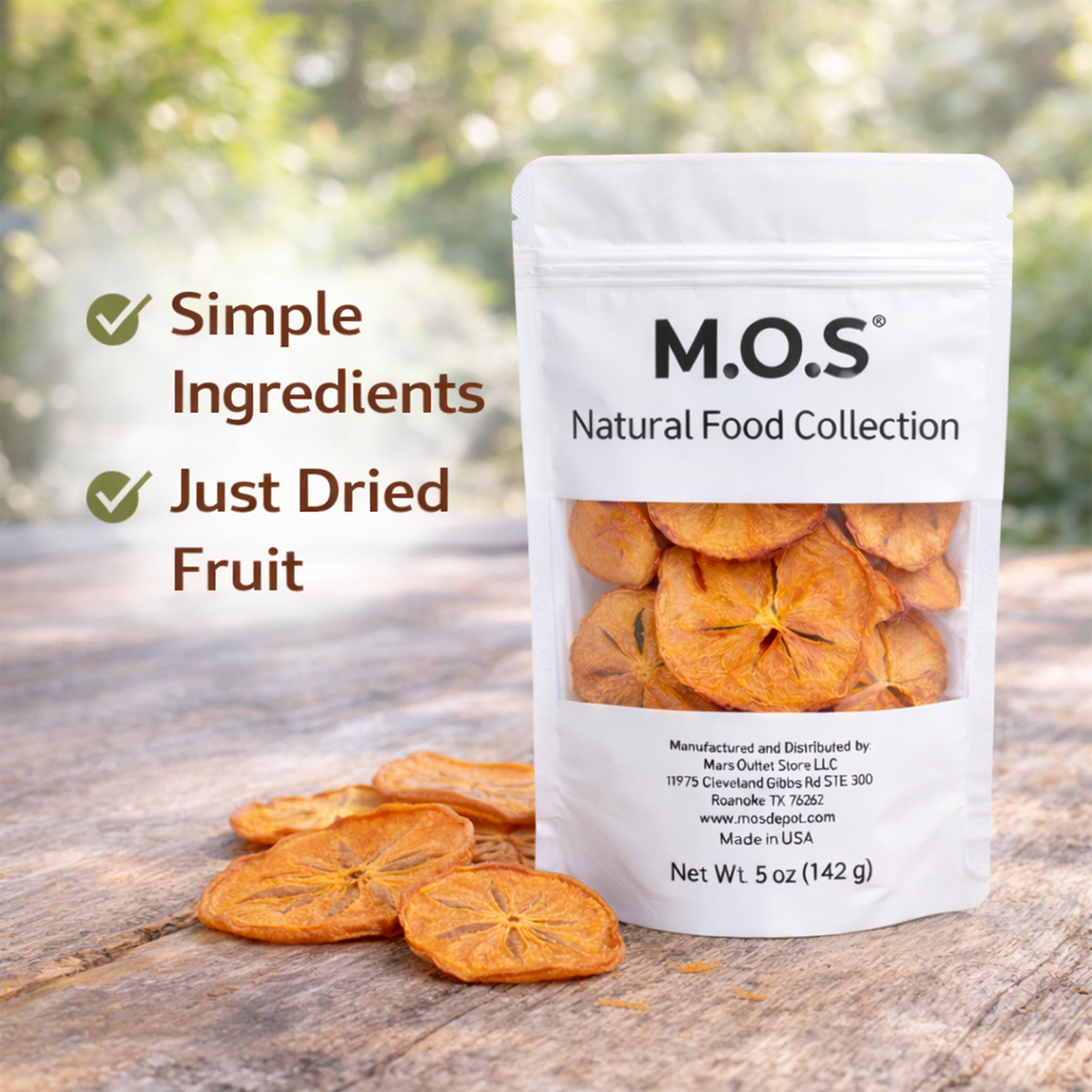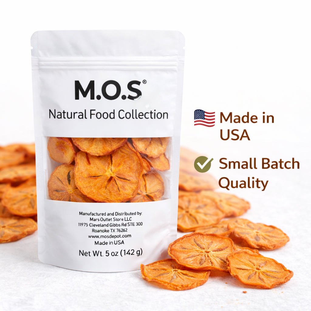 Naturally crispy taste of M.O.S Dried Persimmon Slices, made from real persimmons and carefully dried to preserve their texture and flavor. These thin sliced persimmon chips are fully dried to deliver a satisfying crunch without added sugar, preservatives, or artificial ingredients.
