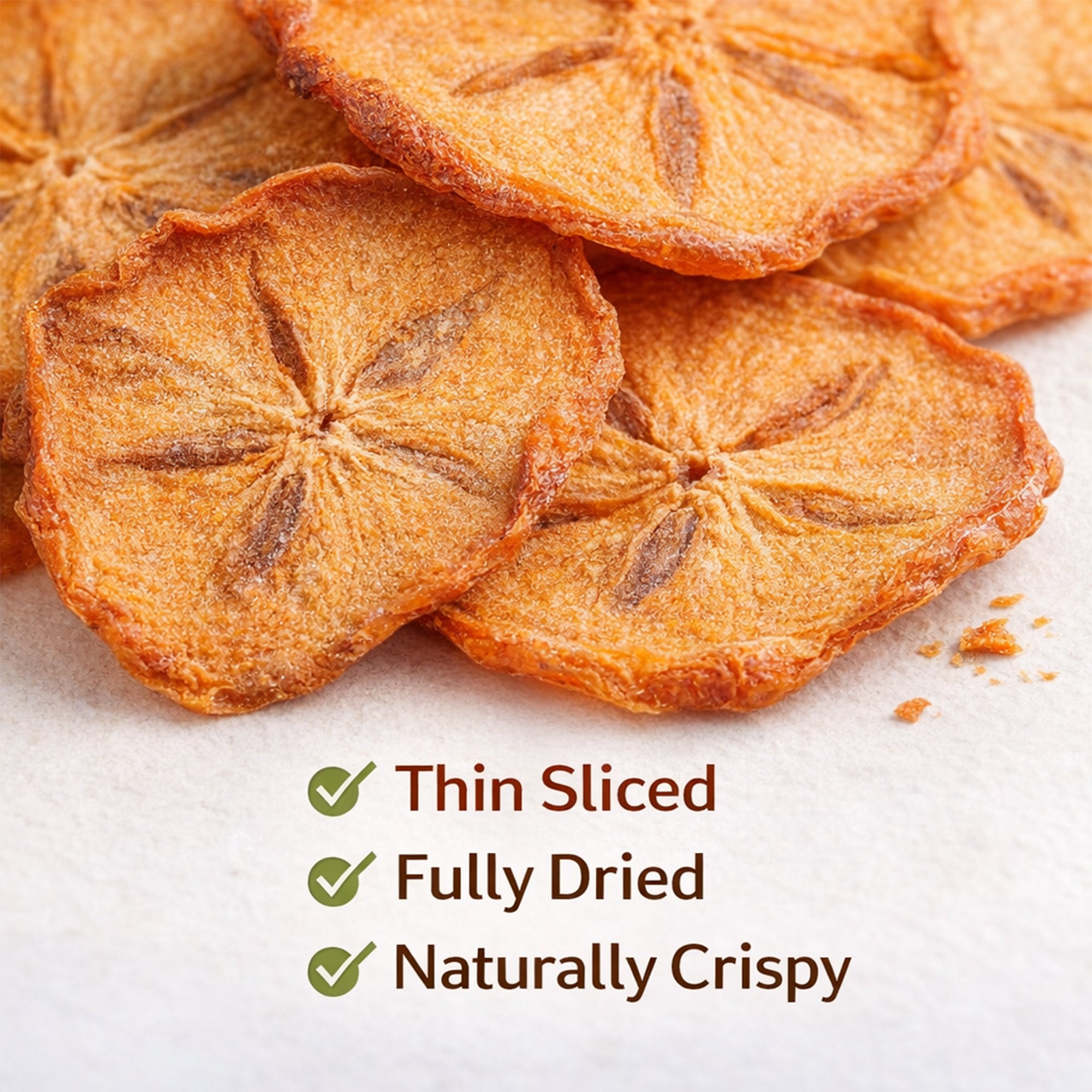 If you are looking for a naturally crunchy dried fruit snack with no sugar added and no unnecessary ingredients, these dried persimmon slices are a smart and satisfying choice.