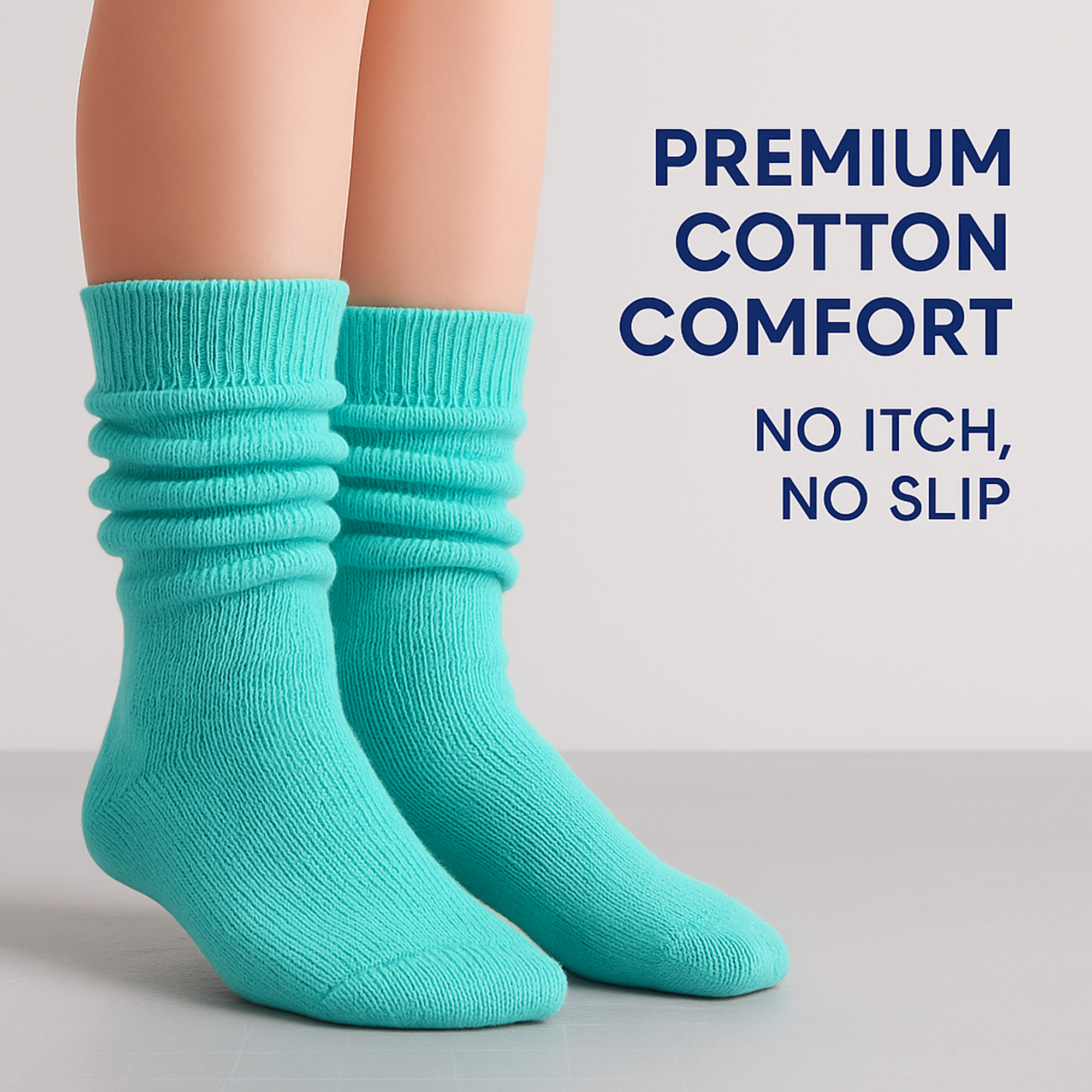 Kids Slouch Socks 1 Pair Long Scrunchy Crew Socks for Girls and Boys Ages 9–12
