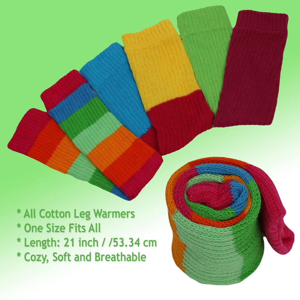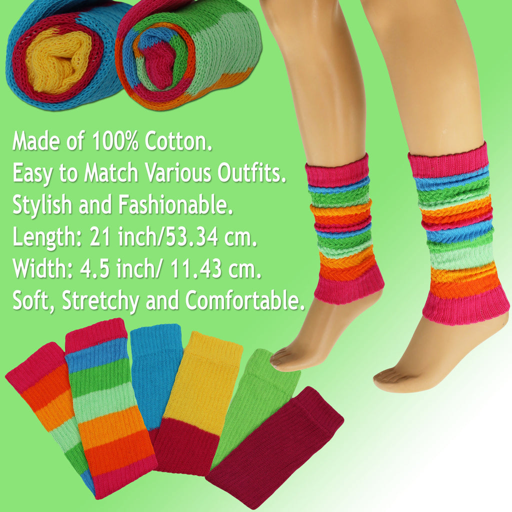 Package Includes: 1 pair of women’s colorful cotton knitted leg warmers.