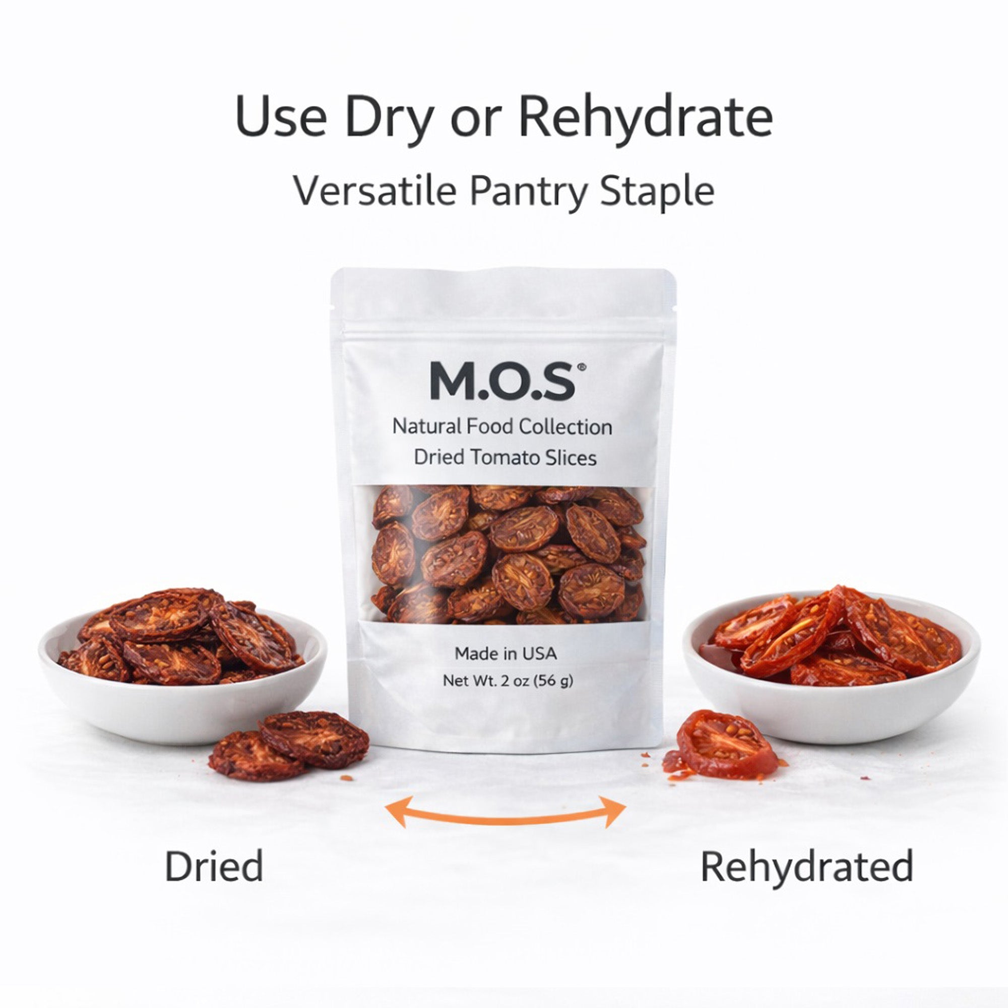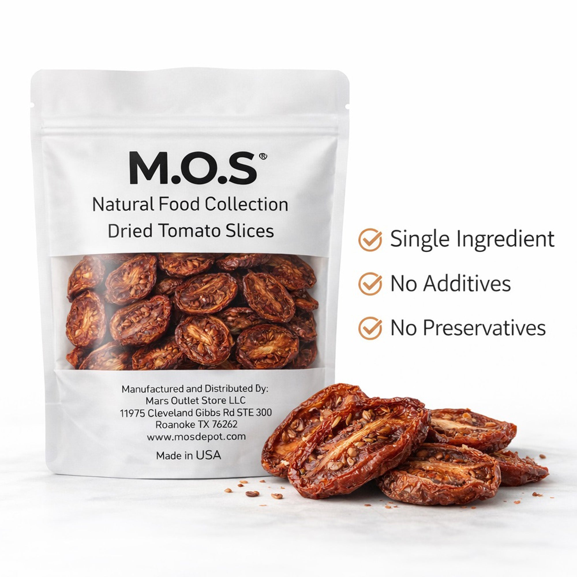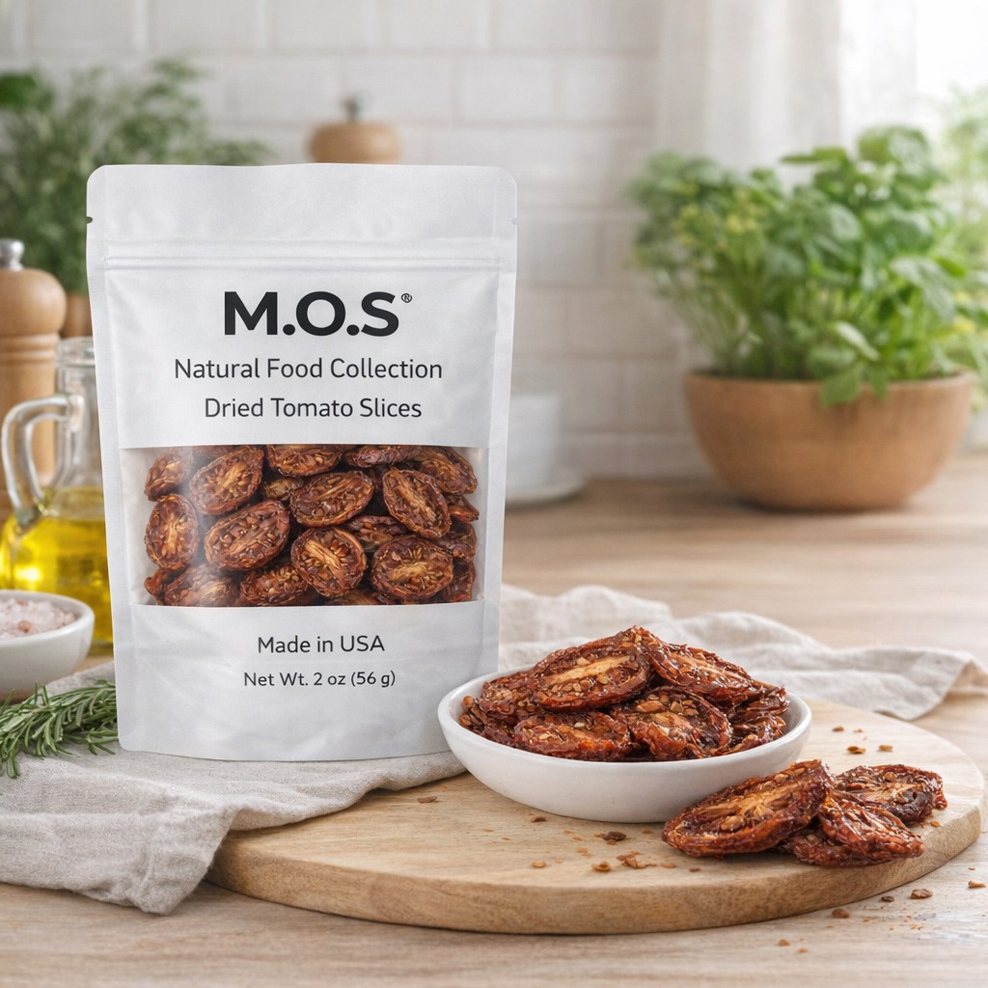 M.O.S Dried Tomato Slices 2 oz – Dehydrated Tomatoes Made in USA, No Additives, No Preservatives, Vegan Clean Ingredient