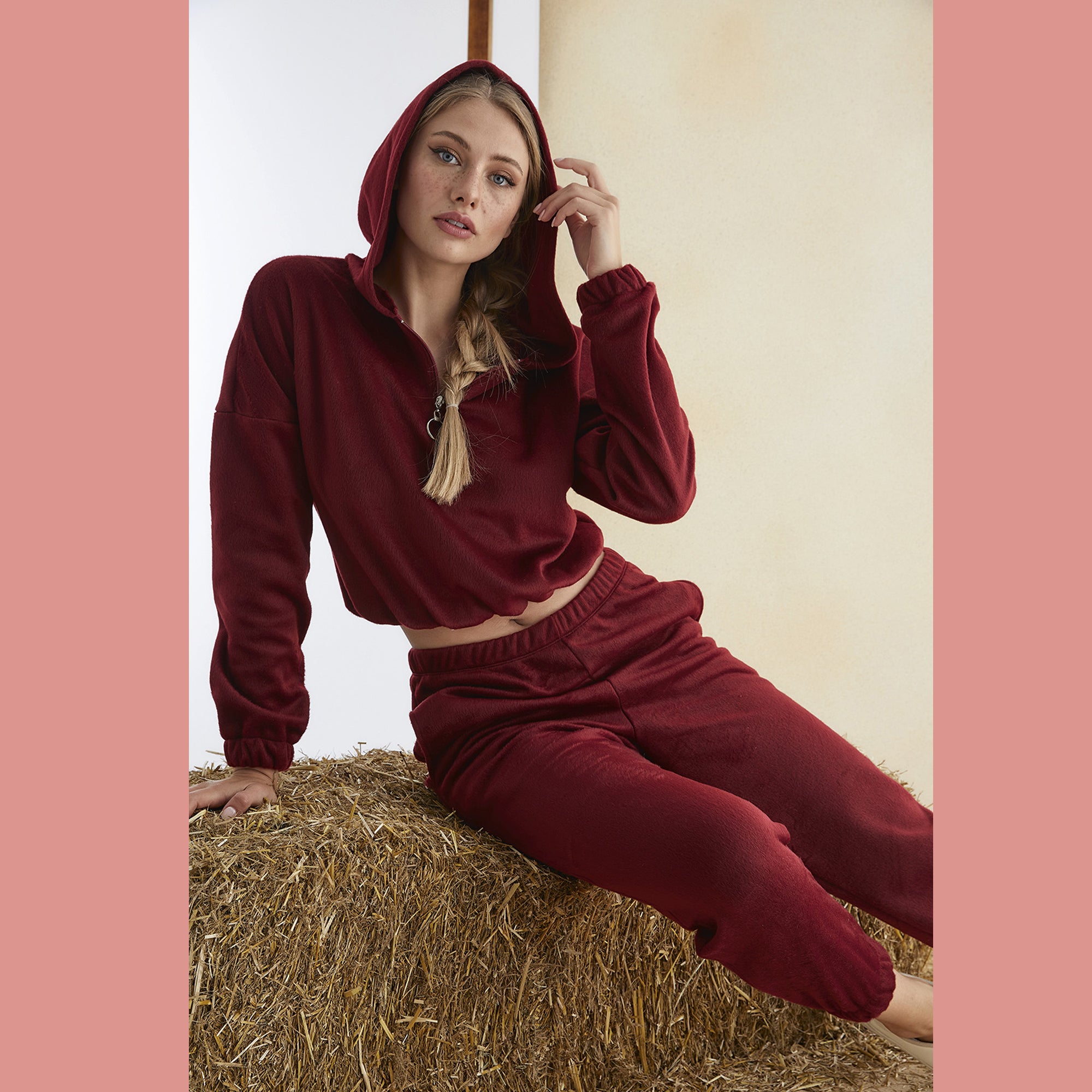 2-piece pajama/loungewear set: cropped hoodie & long pants