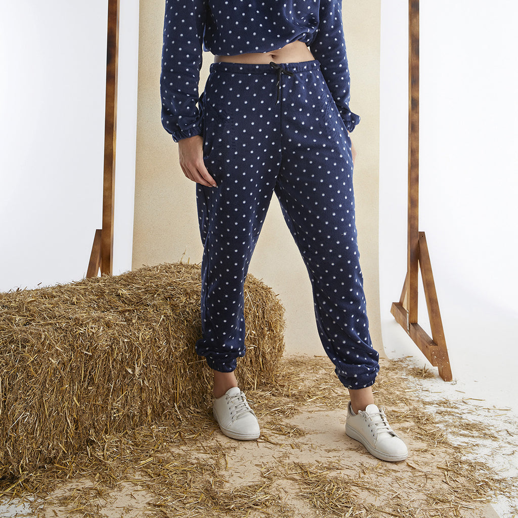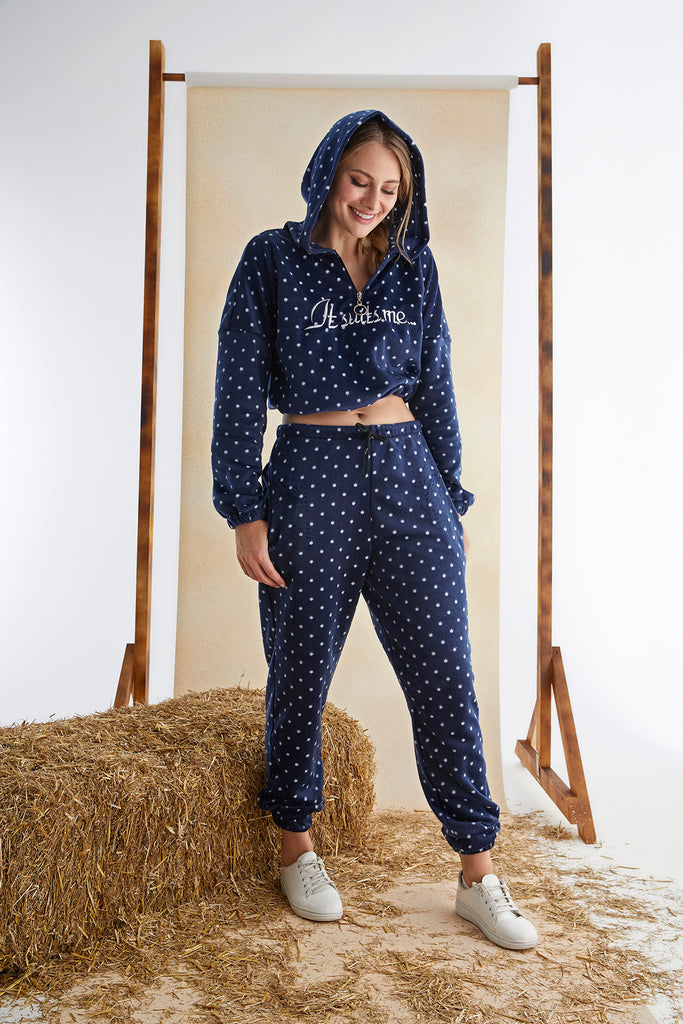 Women’s Junior Cotton Tracksuit Pajama Set – 2-Piece Polka Dot Crop Hoodie & Pants