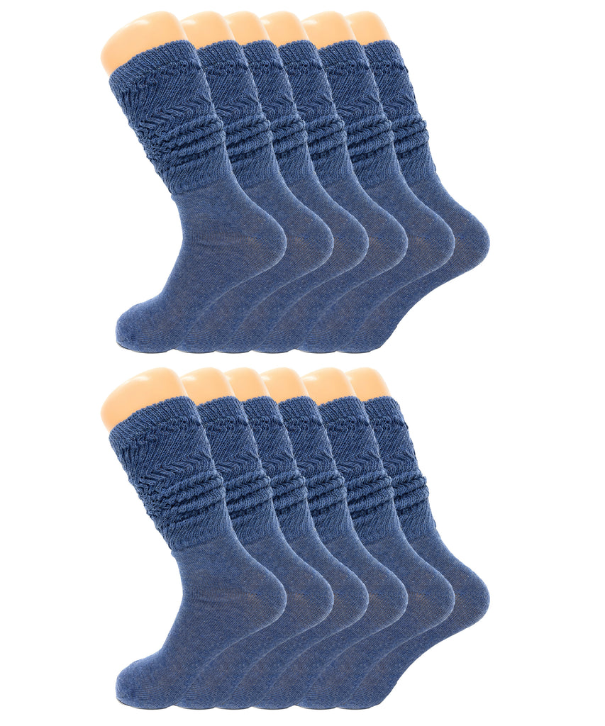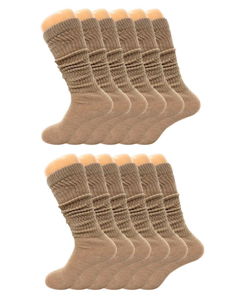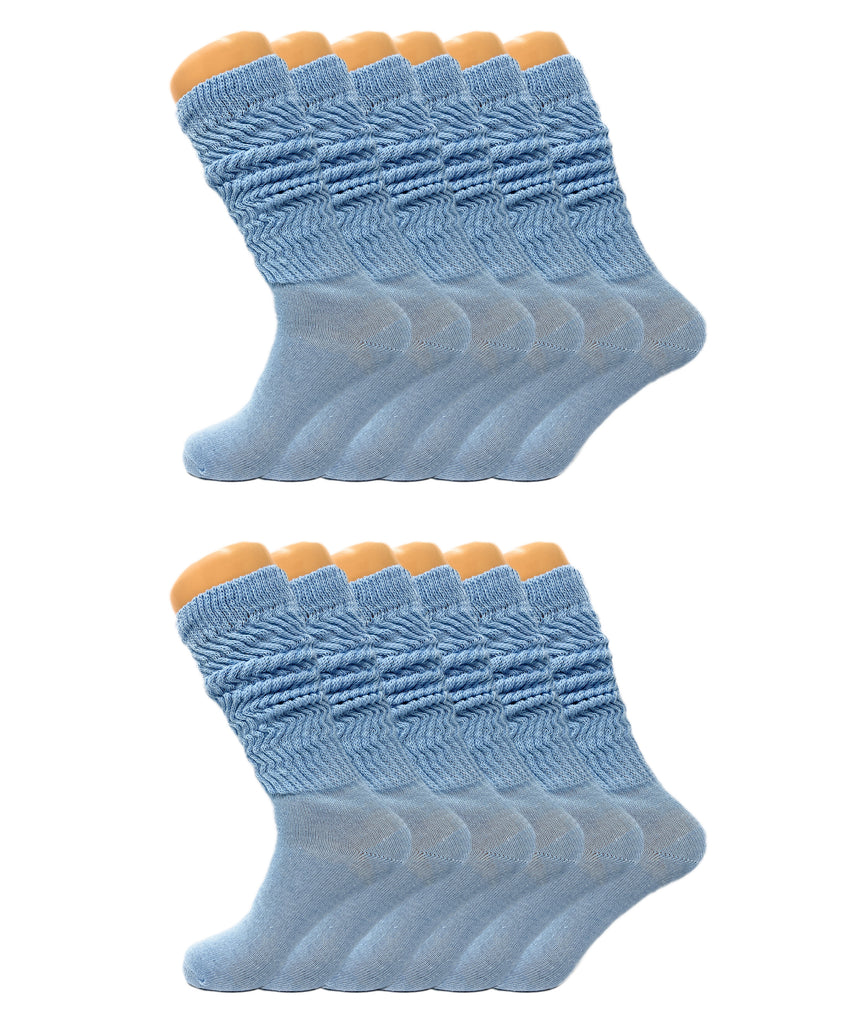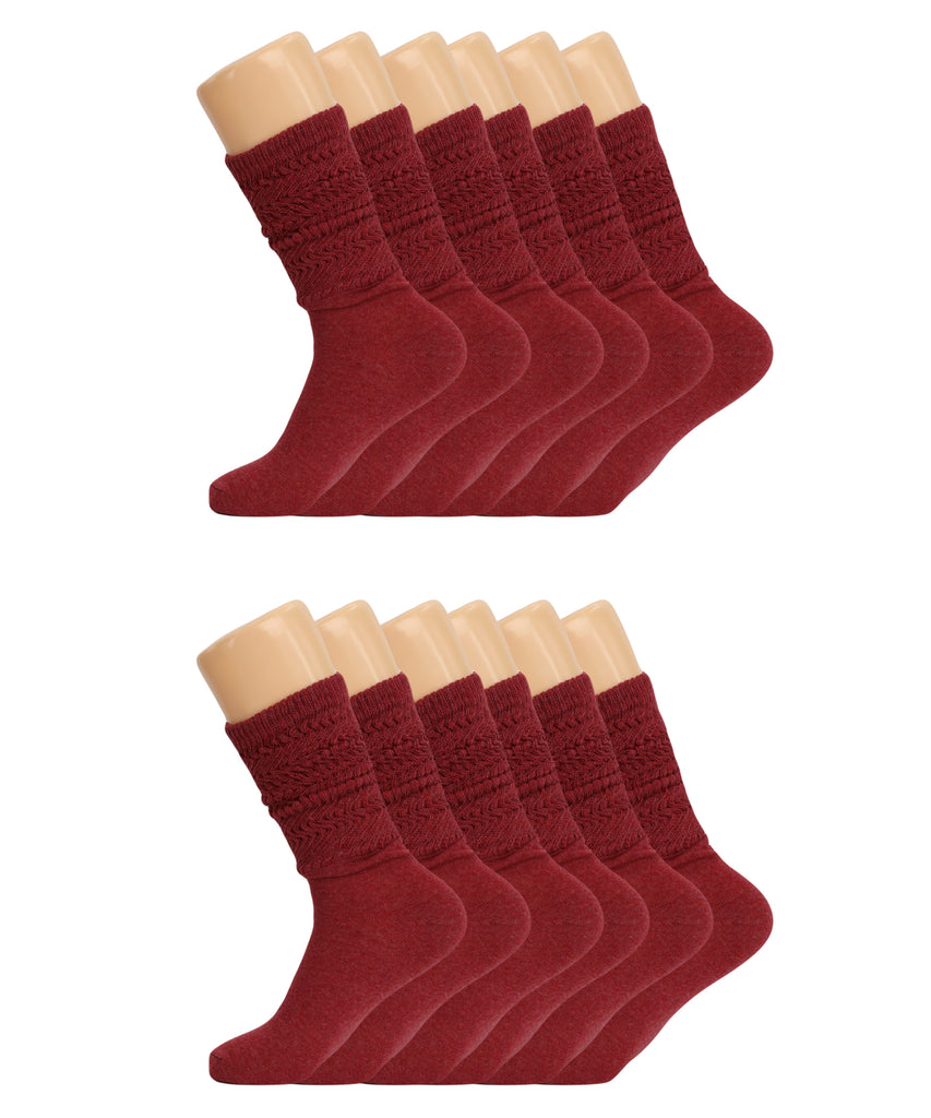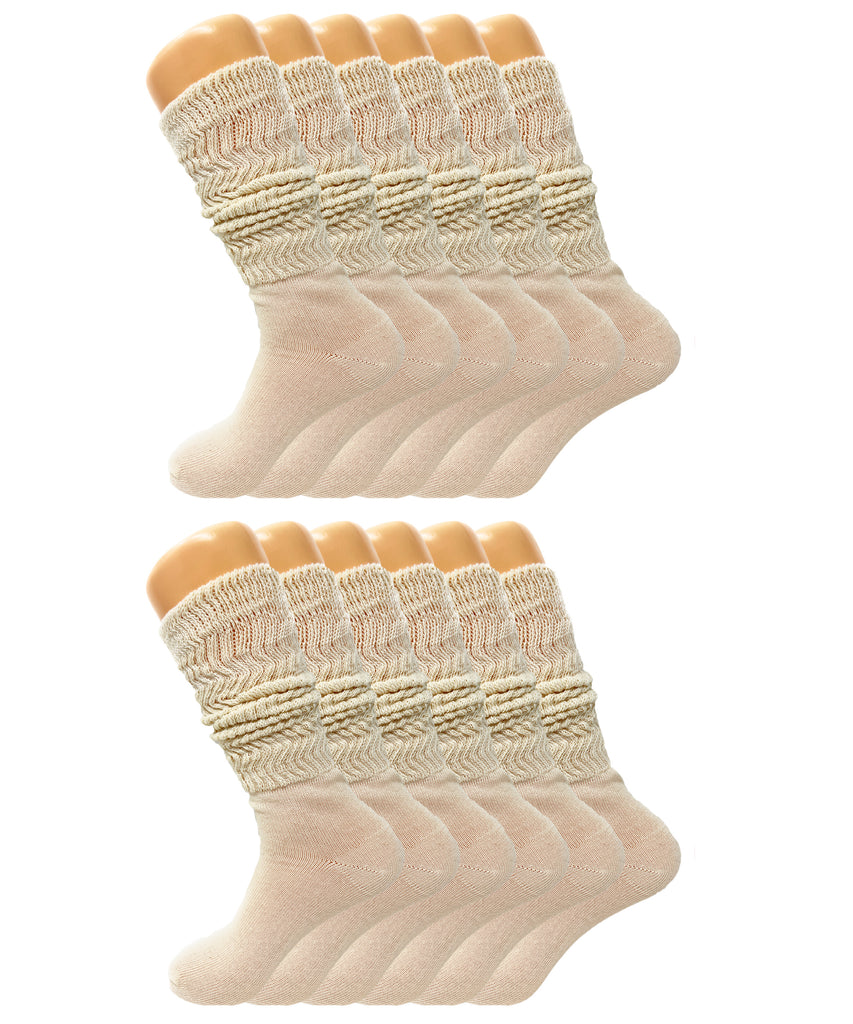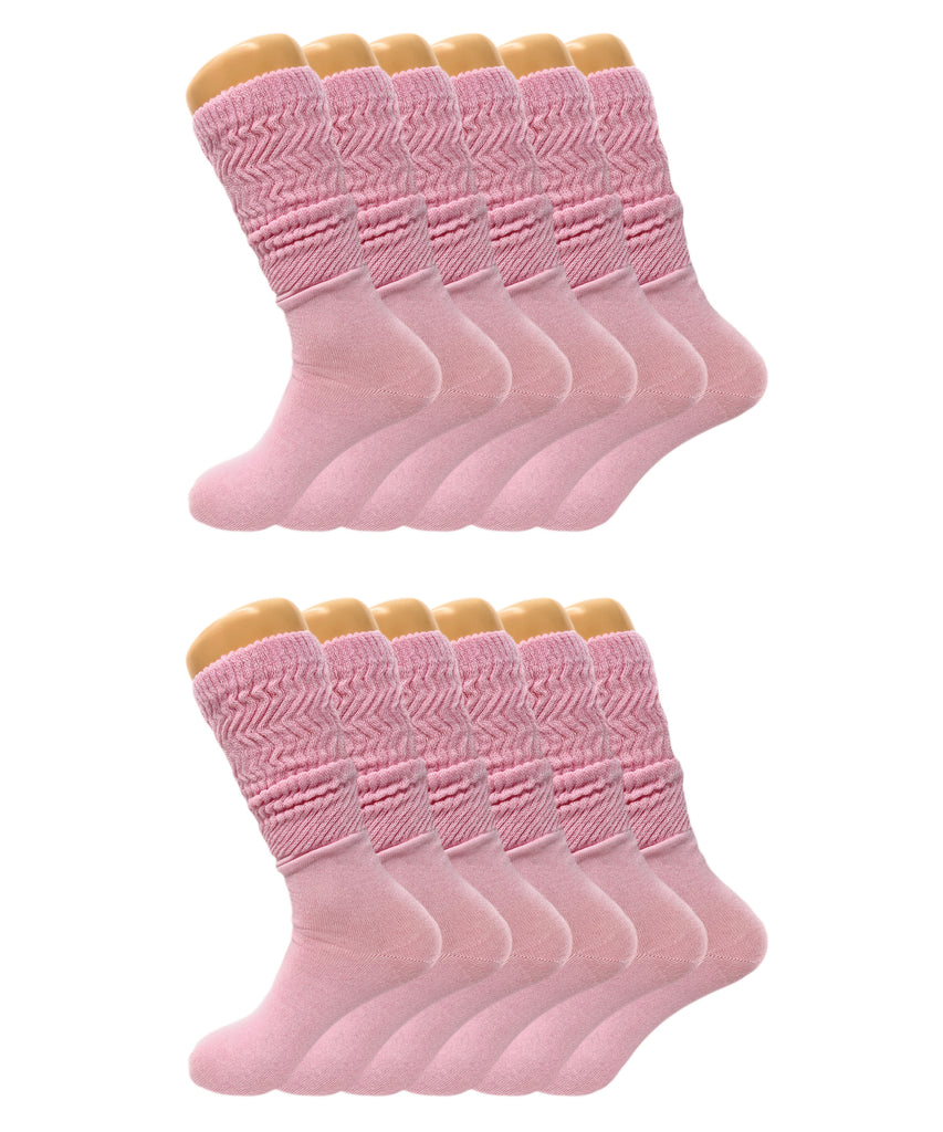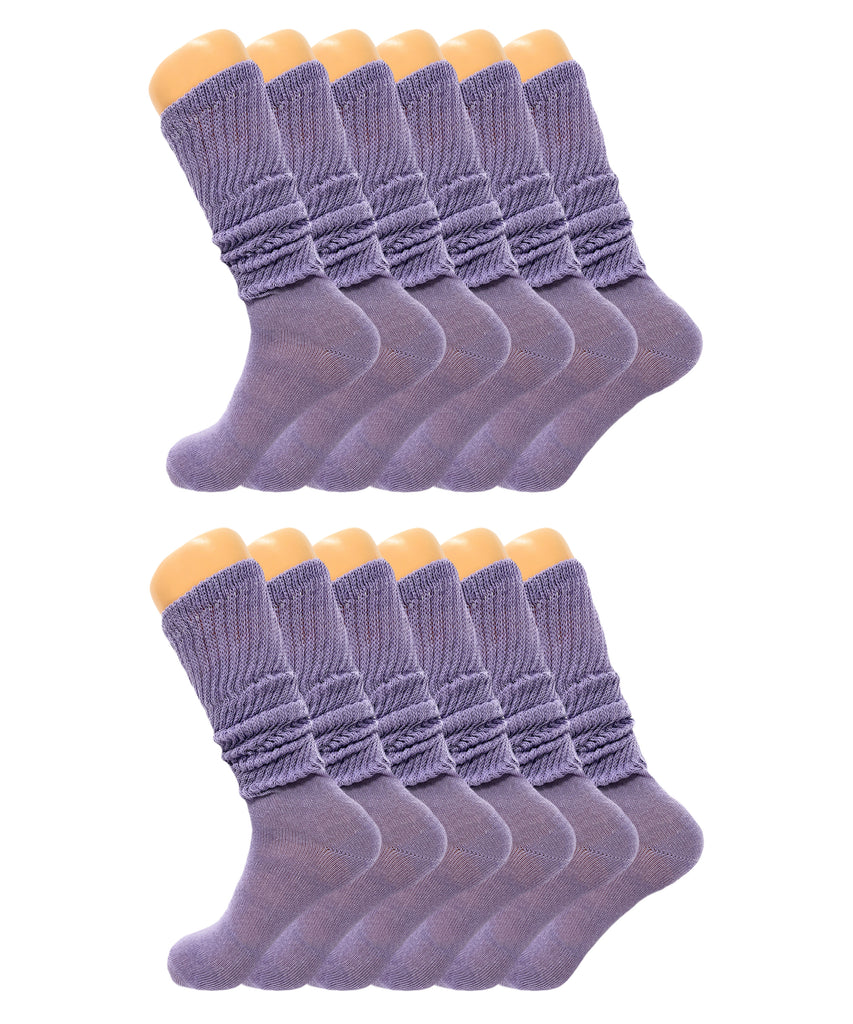 Women’s Slouch Scrunch Socks 12 Pairs Cotton Knee-High Shoe Size 5-10