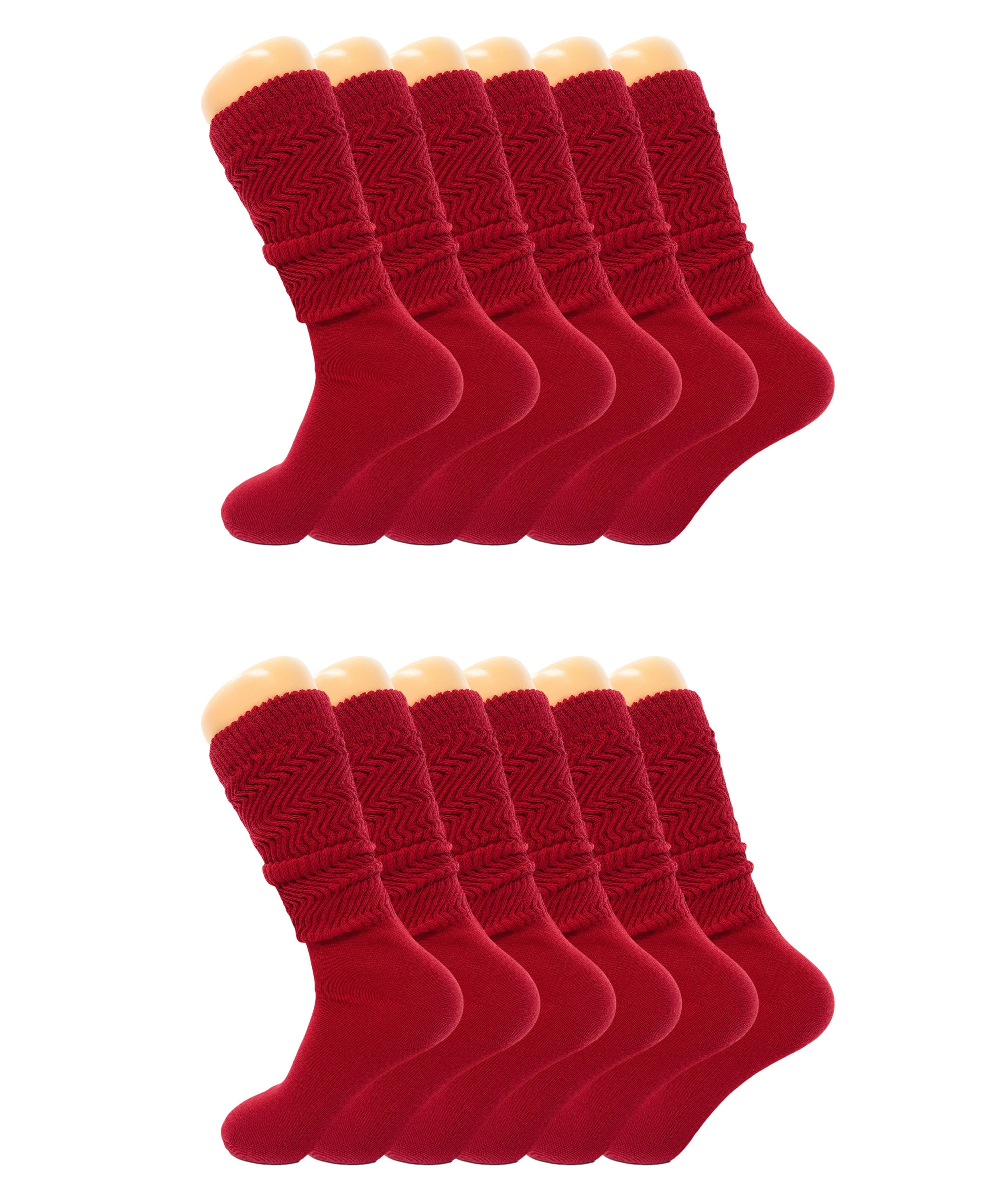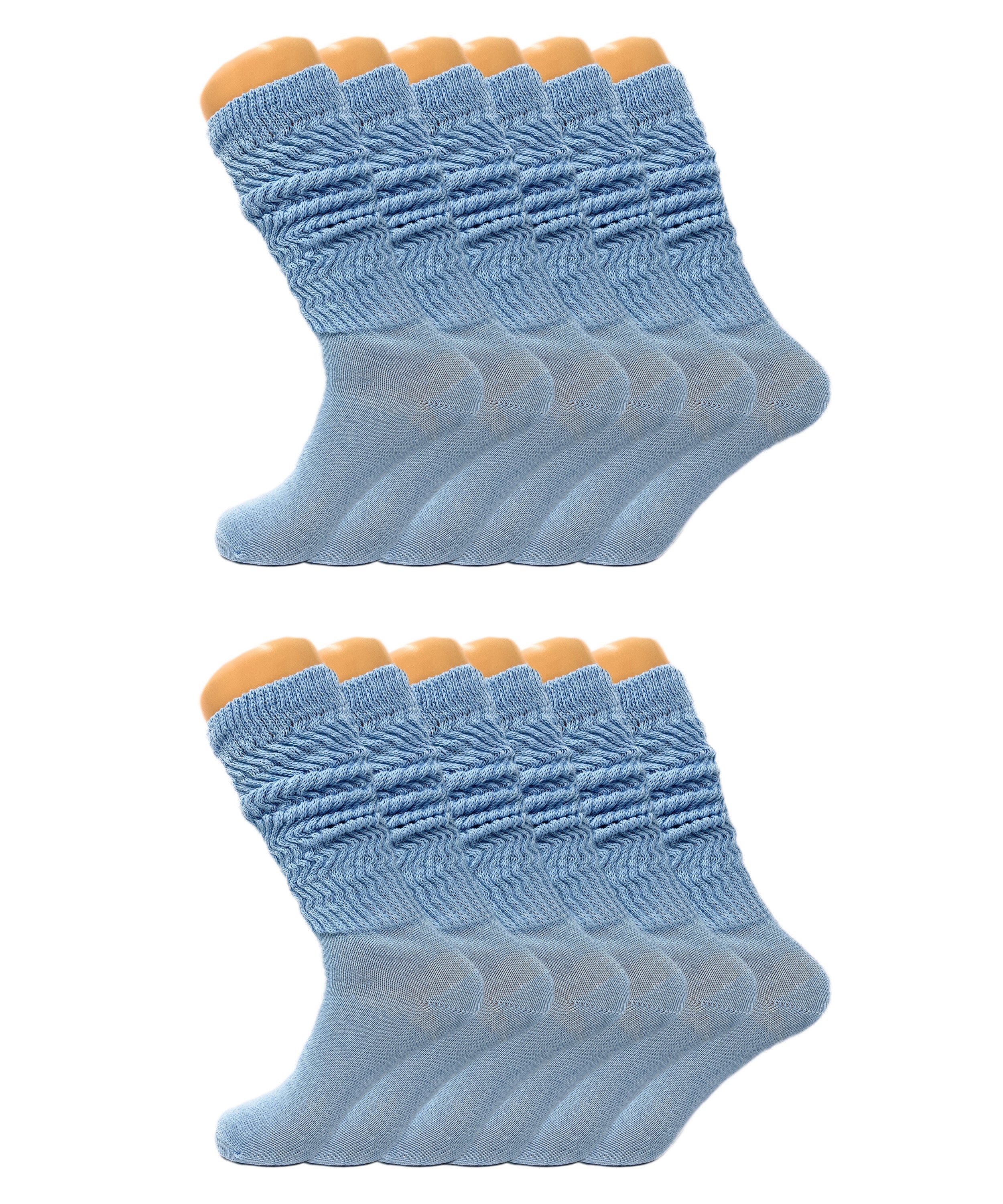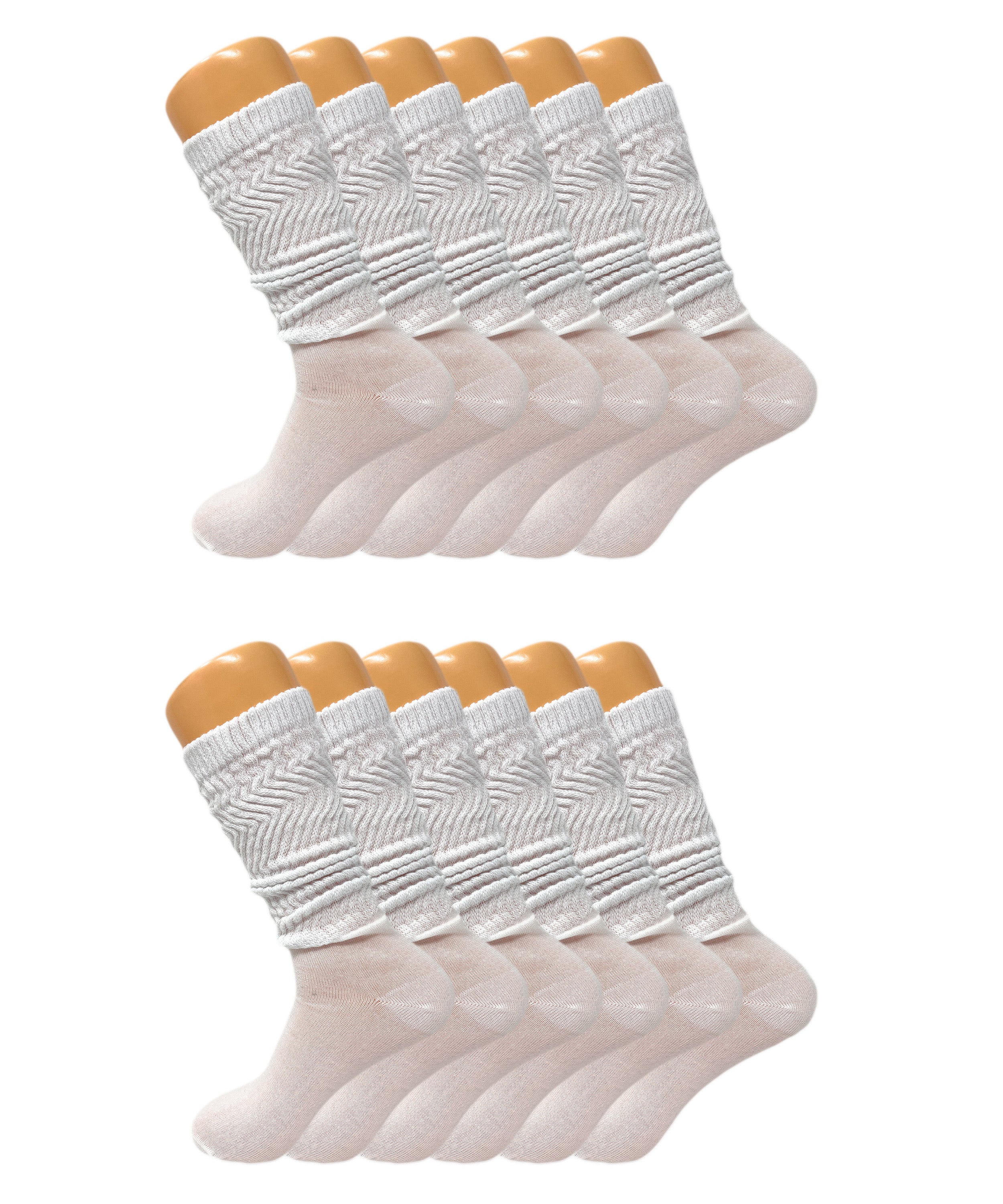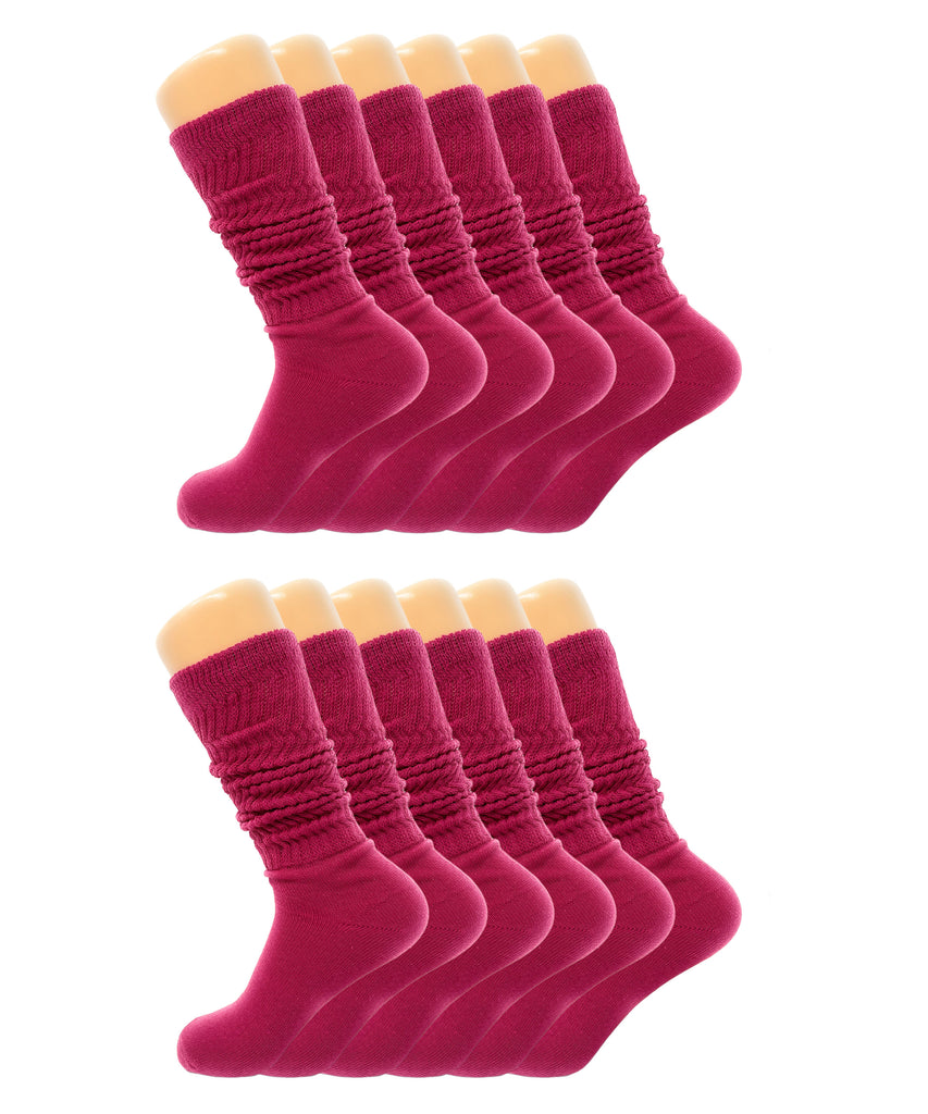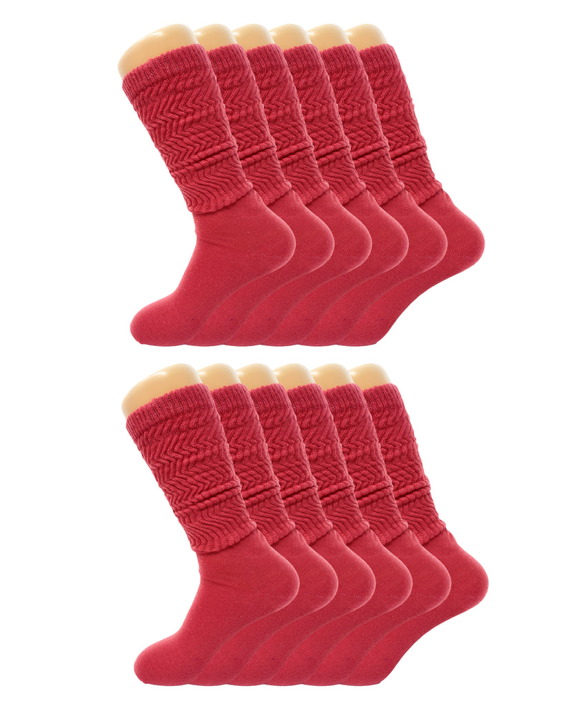 Women’s Slouch Scrunch Socks 12 Pairs Cotton Knee-High Shoe Size 5-10