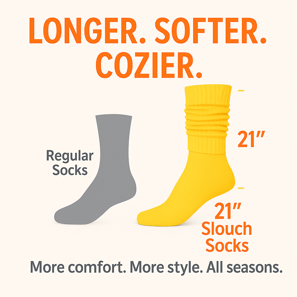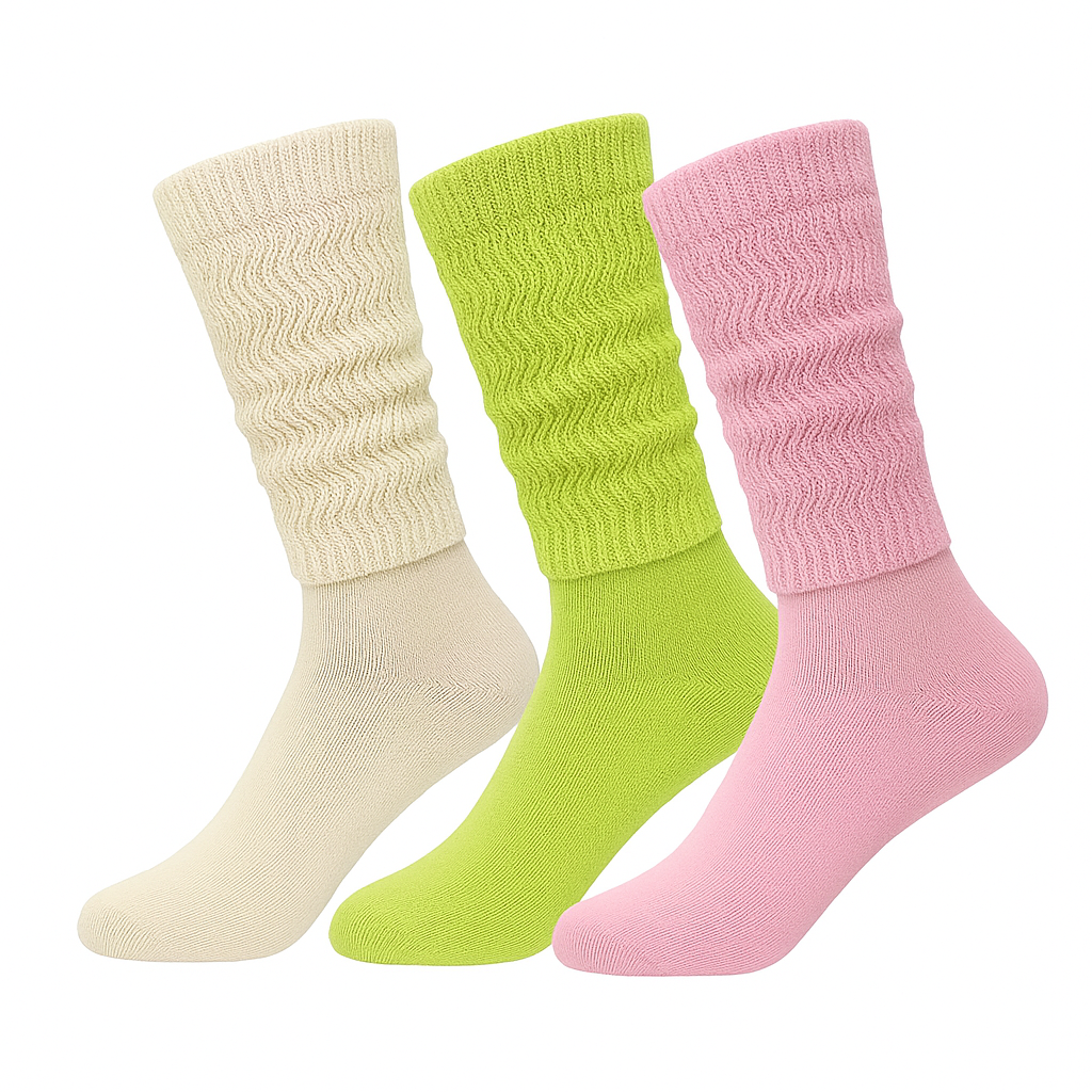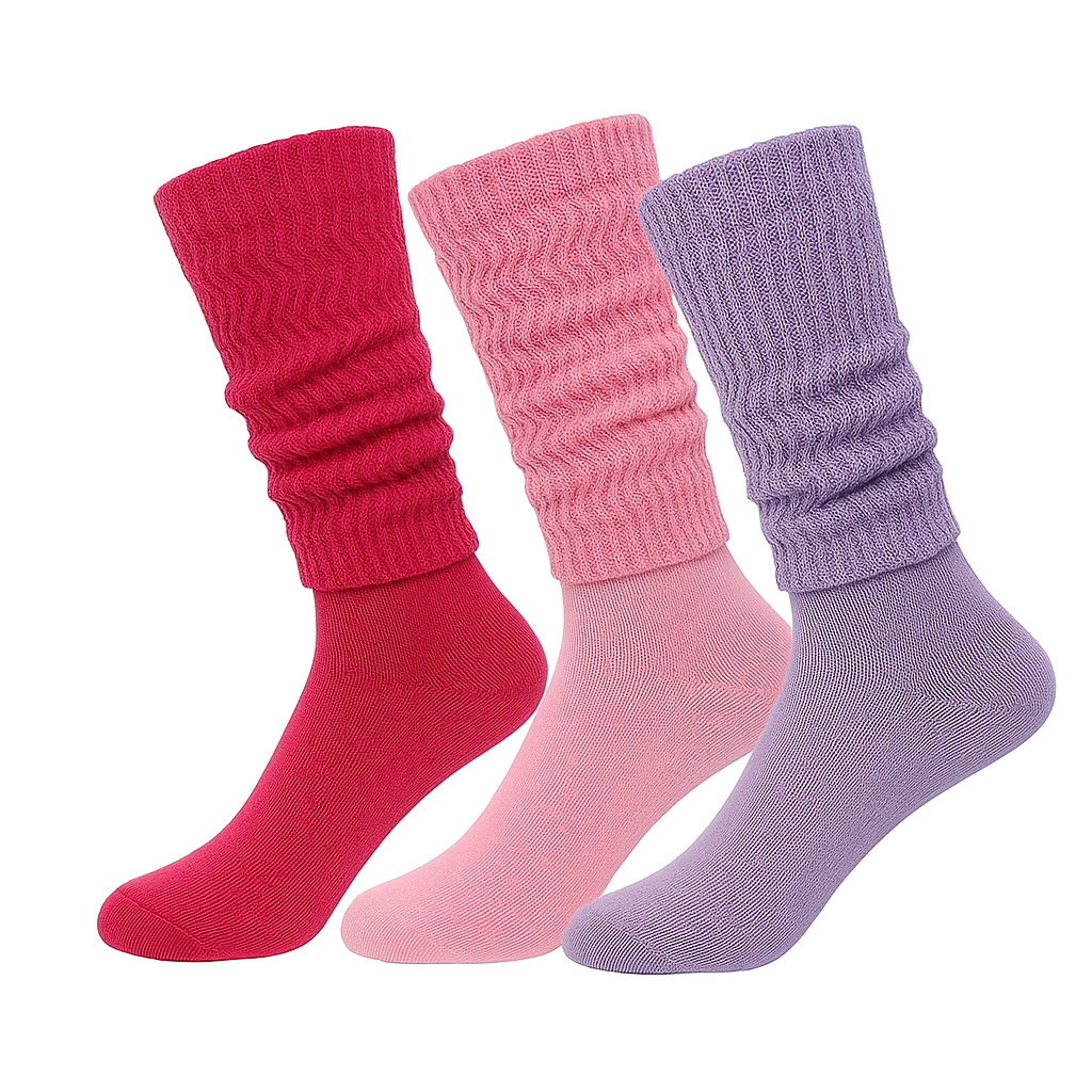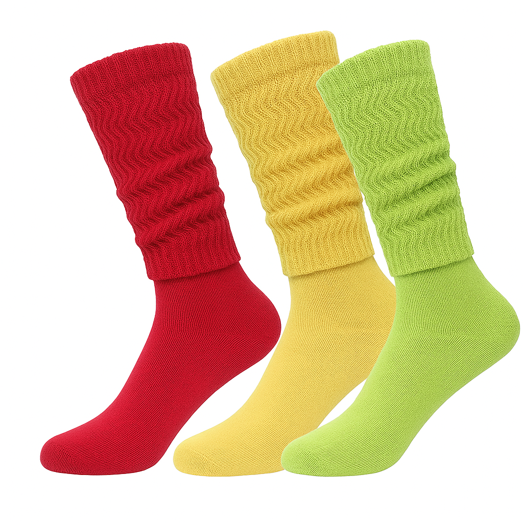 Add a retro flair to your wardrobe with these slouch socks—ideal for everyday wear, dance rehearsals, 80s parties, or layering with boots for a chic, vintage-inspired look.