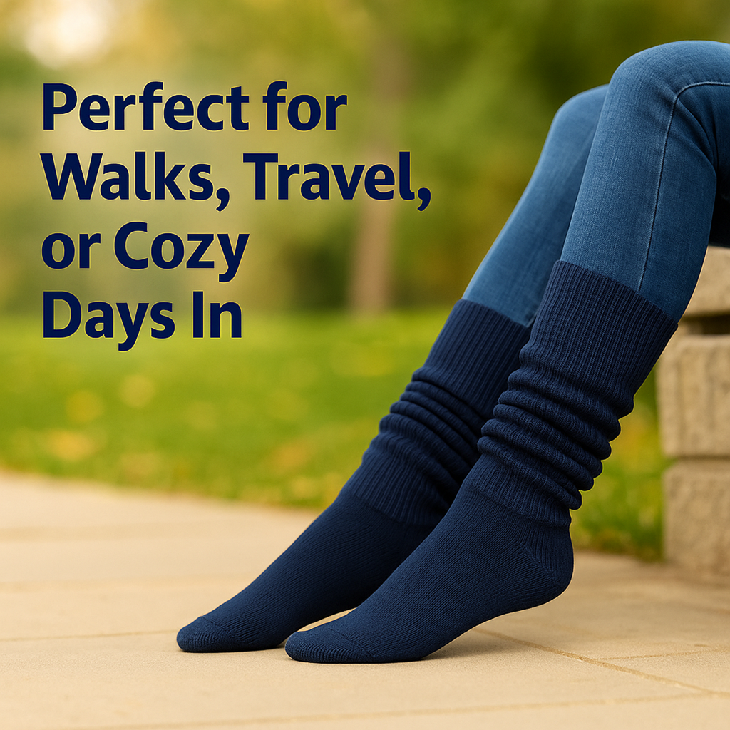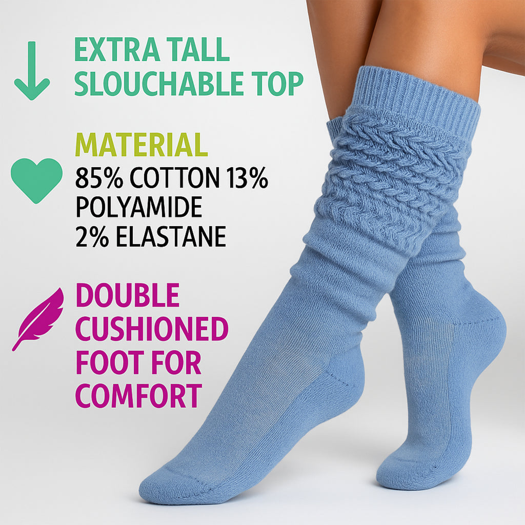 These women's slouch socks combine vintage-inspired style with modern comfort. Designed for a relaxed, scrunchable fit, they feature a soft cotton-rich blend (85% cotton, 13% polyamide, 2% elastane) for breathable warmth and flexibility. Whether lounging at home, layering under boots, or styling them with a retro outfit, these knee-high scrunch socks deliver all-day coziness without feeling restrictive.