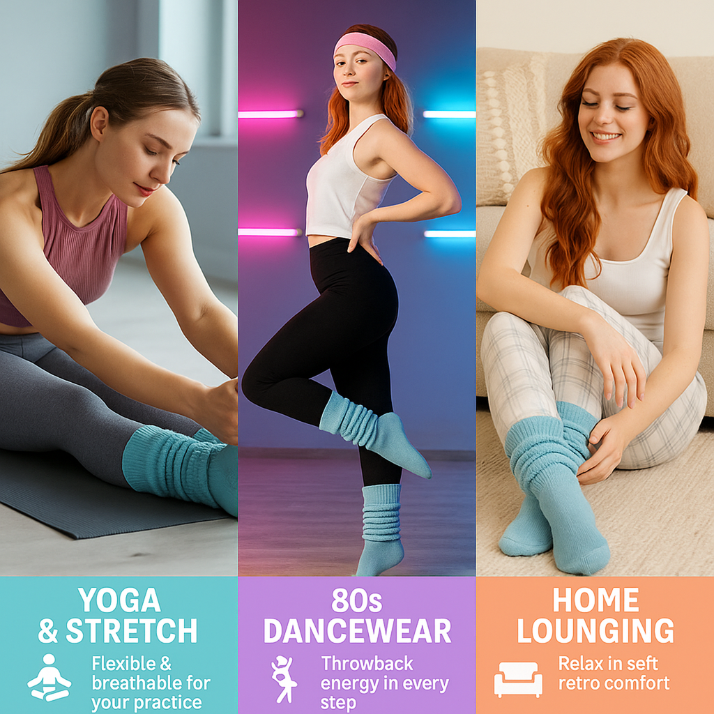 - Retro 80s Style – Scrunch or Pull Up: Wear them slouched down for a casual, vintage look or pulled up for extra coverage and warmth.
